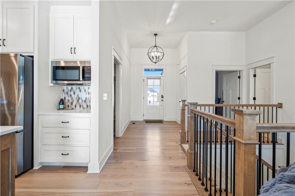 Tucked away on a quiet cul-de-sac in the well-loved Symphony Farms community, this "better than new" reverse ranch blends thoughtful design with everyday comfort. Just one year old and move-in ready, the home features abundant natural light, custom window treatments, a fully fenced backyard, and a radon mitigation system already in place. The main level offers true single-level living with a spacious primary suite, convenient main-floor laundry, and a guest bedroom with a full bath. Downstairs, the finished lower level expands your living space with two additional bedrooms, a full bath, a large living room, and generous storage perfect for hobbies, seasonal items, or future needs. Enjoy peaceful outdoor living on the cover deck with modern construction, and access to Symphony Farms’ outstanding community amenities - all in a location that feels both private and connected. Just a hop and skip from Celebration Park and Gardner Lake, get ready for tons of summer fun! **PLEASE NOTE DIRECTIONS INCLUDED - Apple maps takes you to a slightly different location in the neighborhood.