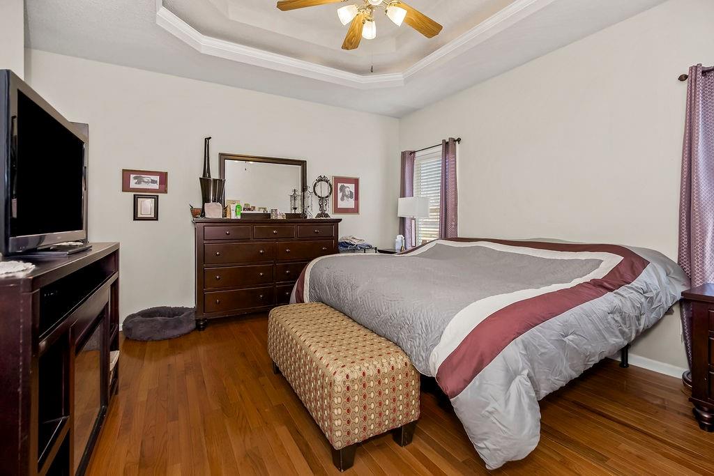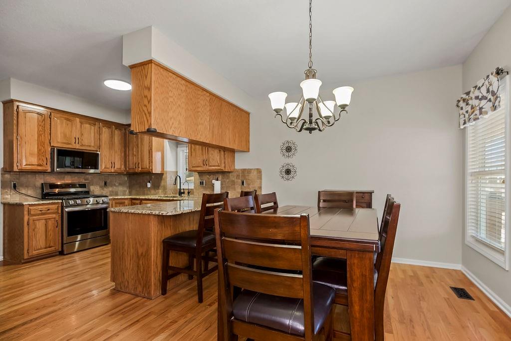 Welcome home to this beautiful 3-bedroom, 2.5 bath ranch, ideally situated on a corner lot in the sought-after Staley HS Boundaries. As part of the Willow Woods HOA, residents enjoy access to a fantastic neighborhood pool - perfect for summer days. Inside, the home features gorgeous hardwood floors throughout the living room, dining room, and kitchen, creating a warm and inviting atmosphere. The living room is anchored by a cozy fireplace, ideal for relaxing and entertaining. Step out from the main level onto the deck, which overlooks a spacious yard and leads to a walkout basement offering additional living and entertaining potential. This home combines a desirable location, thoughtful design, and neighborhood amenities - don't miss the opportunity to make it yours.