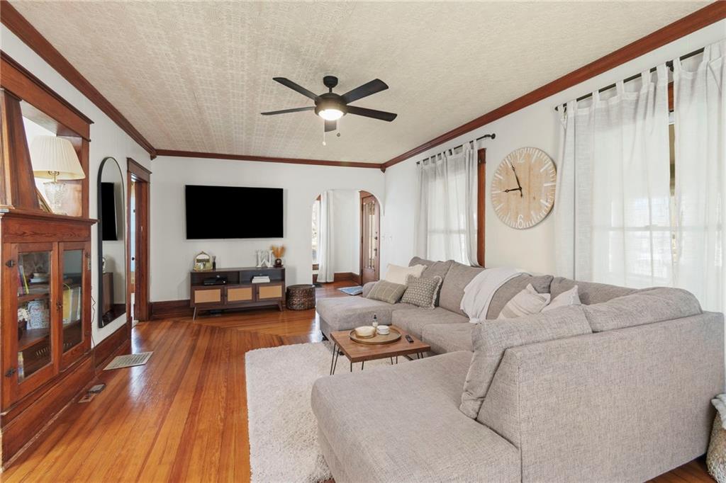 Timeless character meets modern comfort in this beautifully preserved 1923 Craftsman bungalow, rich with the charm and integrity that define homes of this period. From the moment you step inside, you’ll appreciate the stunning original woodwork, including crown molding, built-ins, classic colonnades, heavy five-panel wood doors, and a charming window seat in the formal dining room. Gorgeous wood floors flow throughout the main living spaces, adding warmth and authenticity. The main floor offers two bedrooms, one full bathroom, a formal dining room, and a functional mudroom with laundry. The updated kitchen provides modern convenience while remaining in harmony with the home’s historic character. Upstairs, you’ll find a third bedroom and a full bathroom, creating a versatile space that would make a wonderful primary suite, private retreat, or bonus room. The enclosed front porch is filled with natural light from sunny windows on all sides, making it an ideal sunroom, plant room, or additional living space. Outdoor living continues with a new rear deck, perfect for relaxing or entertaining. A detached two-car garage and carport provide ample parking and storage. A new roof installed in 2023 adds peace of mind. This special home is a rare opportunity to own a true Craftsman bungalow where original details have been lovingly maintained while modern updates enhance everyday living.