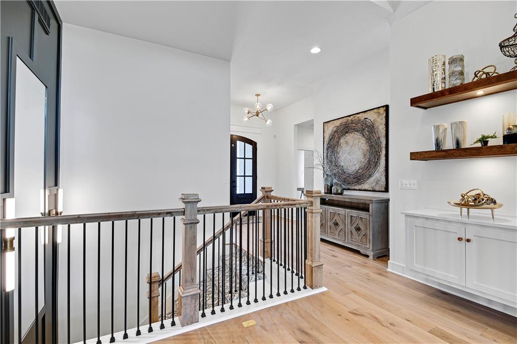 Experience refined luxury in the stunning Bayberry by JFE Construction. From the moment you enter through the impressive 8’ double front doors, you are welcomed by soaring ceilings, dramatic wood beams, and walls of windows that flood the great room with natural light. Expansive sliding doors open to a covered deck with a stone fireplace, perfectly positioned to capture serene greenspace views—an ideal setting for both relaxation and entertaining. The designer kitchen is thoughtfully curated with a large quartz island, stainless steel appliances, rich wood flooring, and an oversized walk-in butler’s pantry, offering both beauty and functionality. The primary suite is a private retreat, featuring a freestanding soaking tub, double vanity, zero-entry shower, and a spacious walk-in closet. A second main-level bedroom or office provides flexible living options. The finished lower level extends the living space with a family room, bar area, game space, two additional bedrooms, and a full bath—perfect for hosting guests. Throughout the home, you’ll find exquisite trim details, wood accent walls, striking black accents, and architectural elements that elevate every space. Located in Canyon Creek Forest, a luxury maintenance-provided, free-standing villa community. Lawn care and snow removal are included, allowing for a truly carefree lifestyle while enjoying all the amenities Lenexa has to offer. Estimated completion April 2026. Still time to make select design choices to personalize this exceptional home. Photos are of a former model and may include upgrades not included in the price.