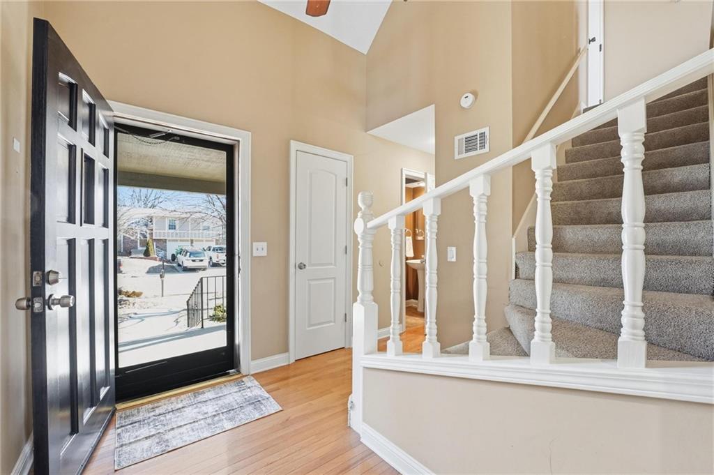 This home offers 4 bedrooms with a desirable layout featuring a primary suite and second bedroom on the main level, plus an additional generously sized primary-style bedroom upstairs. With 2 full baths and 1 half bath, there's plenty of space for comfortable living. The updated kitchen is perfect for everyday living and entertaining with easy pull out shelves and soft close drawers. Two fireplaces - located in the family room and finished basement. The finished basement provides extra living or recreational space. Step outside to an oversized deck overlooking a fenced-in backyard, extra large patio with basketball goal with electric automatic gate. Ideal for relaxing or entertaining. Conveniently located near parks, schools, and shopping, with easy access to major highways.