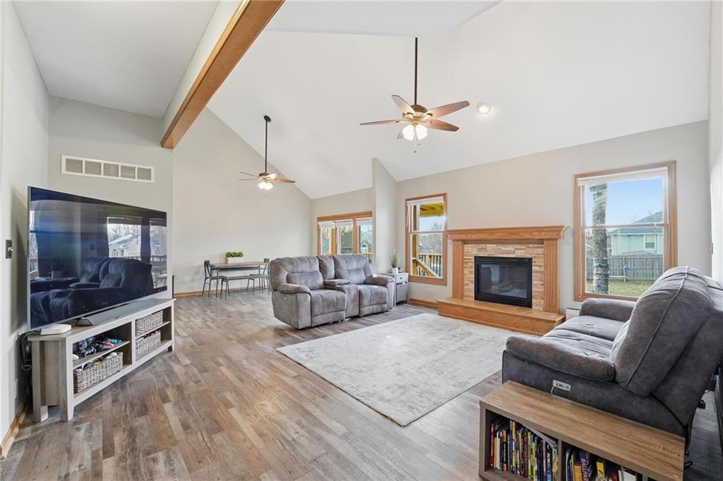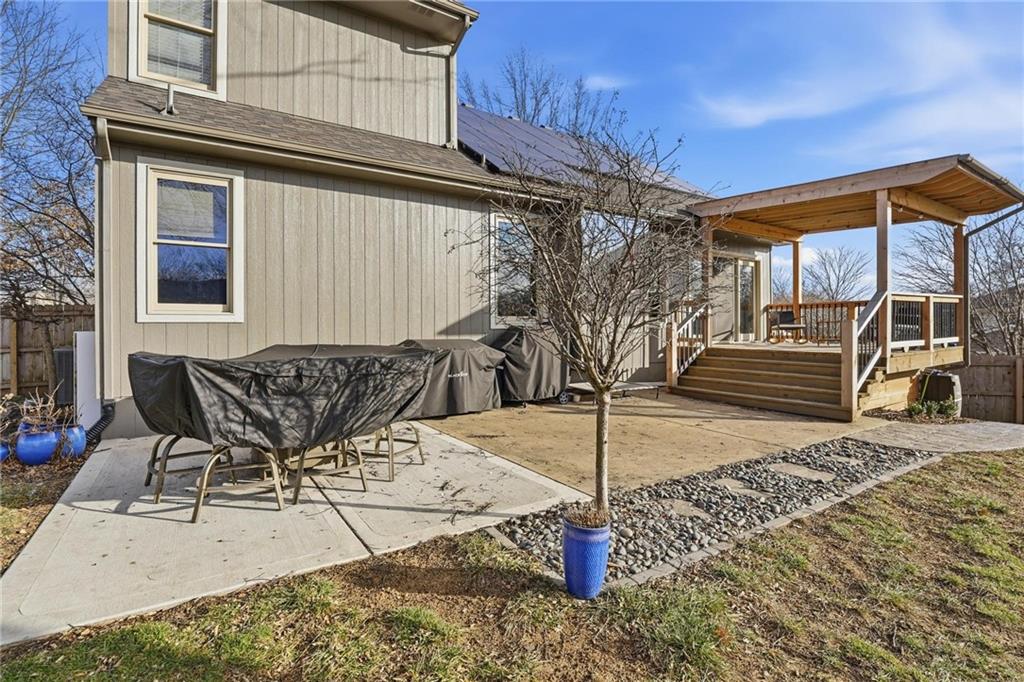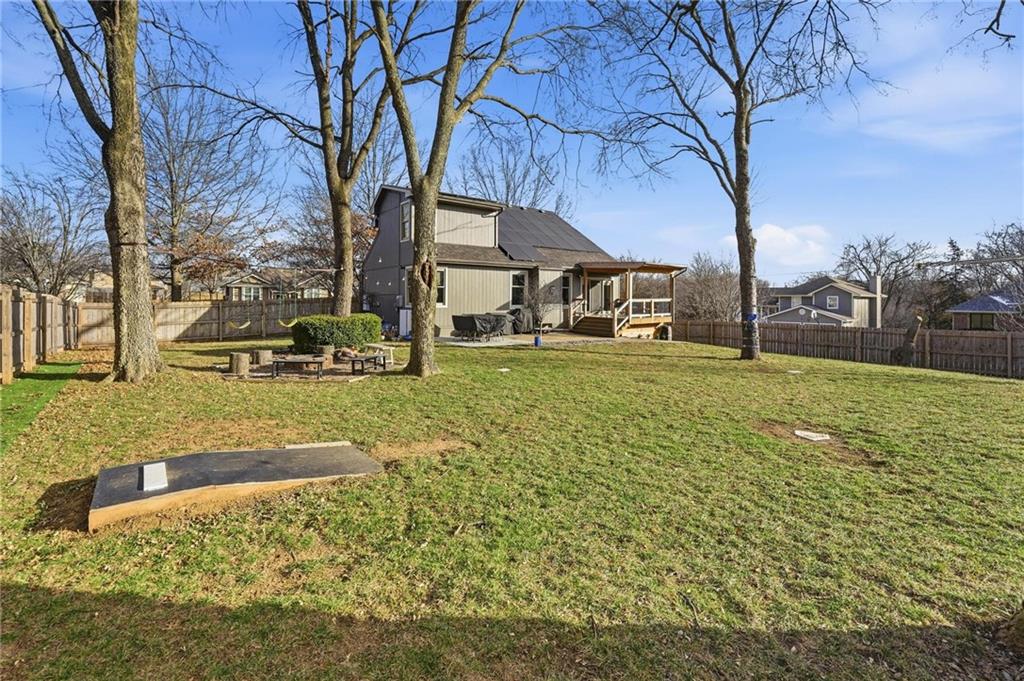 Welcome home to timeless comfort and thoughtful design. Situated on a large corner lot, this well-maintained home offers exceptional indoor and outdoor living space, featuring an open floor plan with a spacious living room, dining area, and kitchen accented by high ceilings that create a bright, inviting atmosphere. The large primary bedroom includes a walk-in closet, while recent updates such as a newer roof, newer flooring throughout the main level, and newer kitchen countertops add both style and peace of mind. Outdoor living shines in the generous backyard with a covered deck, expansive patio, and fire pit—perfect for family time, entertaining, or quiet evenings at home. Additional highlights include a large front porch, oversized garage, and HVAC systems less than two years old. Energy-efficient solar panels offset approximately 90% of the home’s annual electricity usage, complemented by a whole-home backup battery that helps keep most of the house powered during outages. Conveniently located near elementary school and middle school, this home offers the space, efficiency, and location today’s families are looking for. Schedule your showing today!