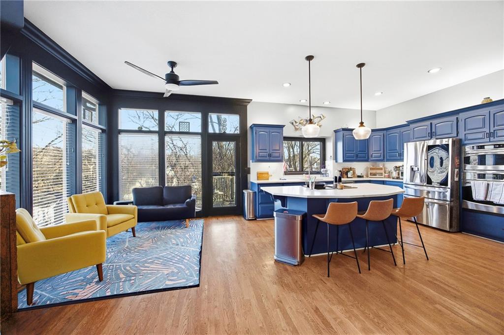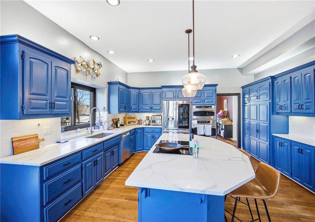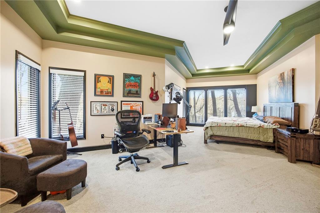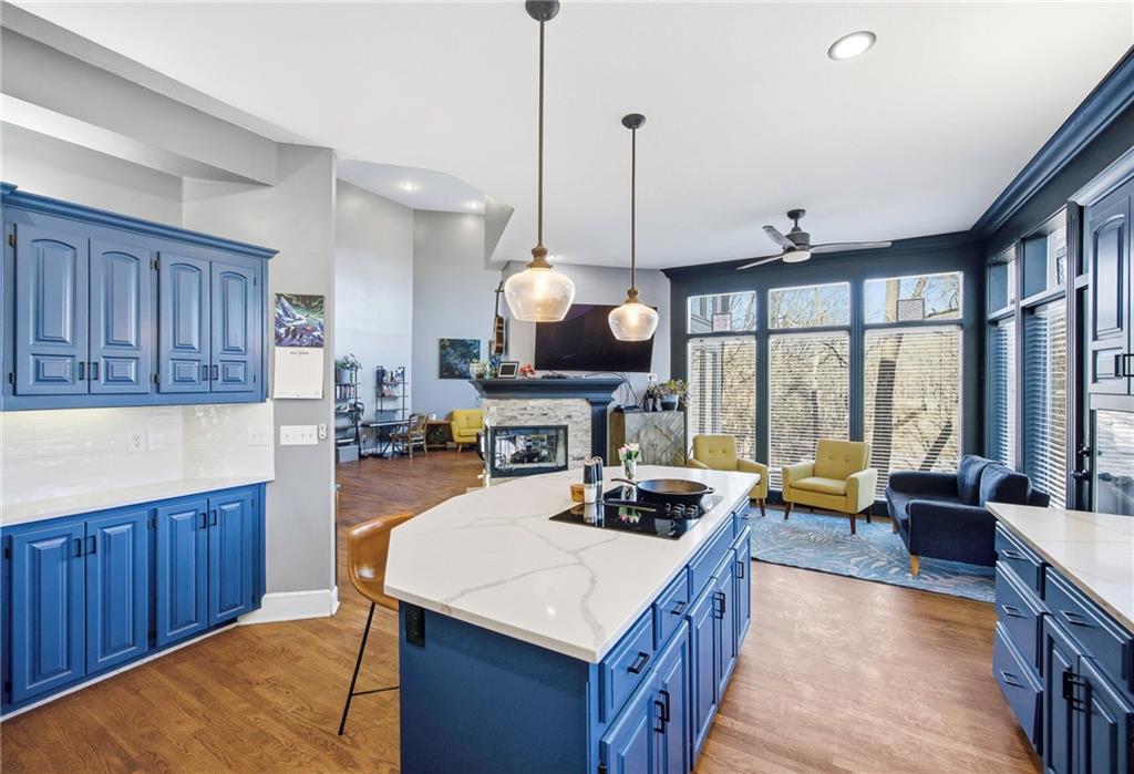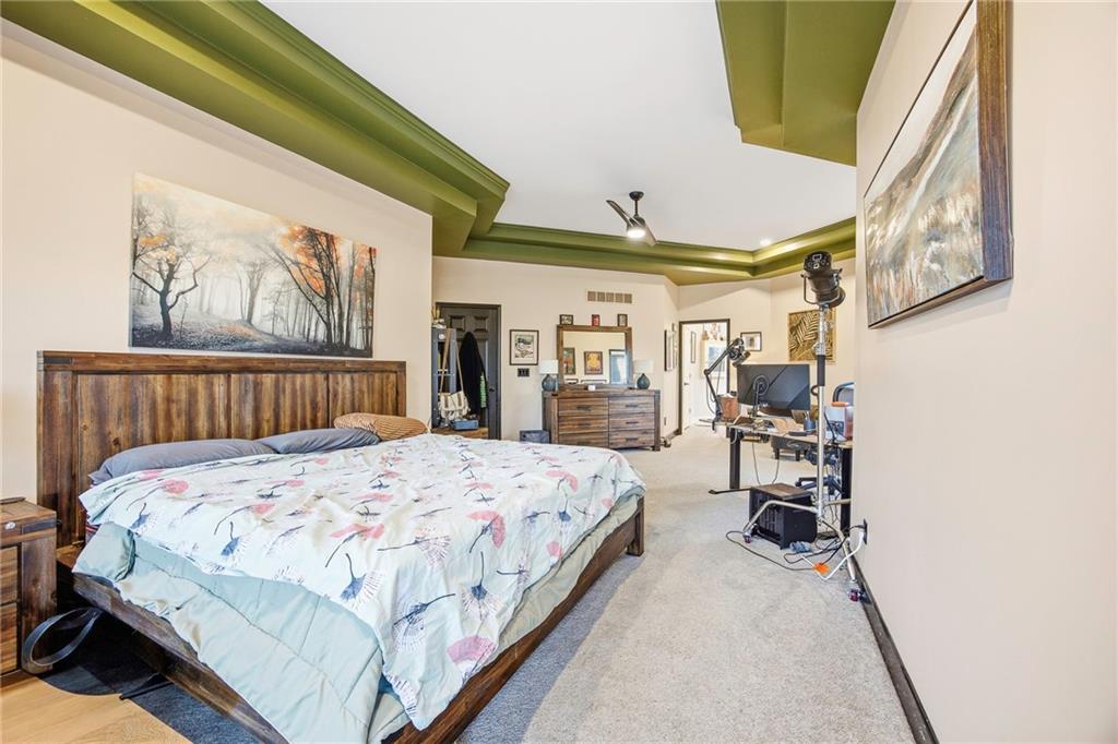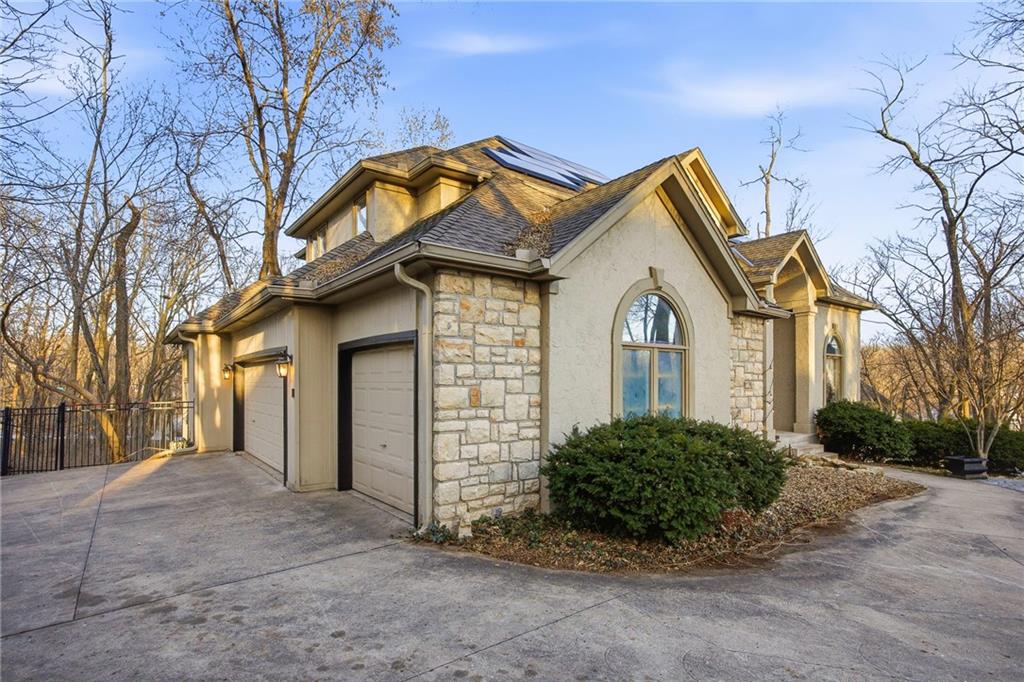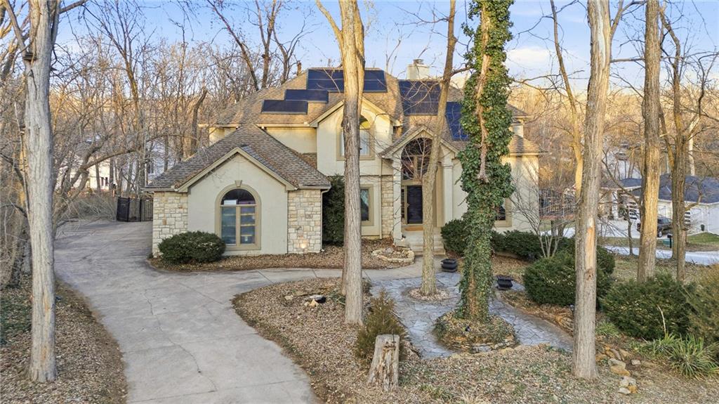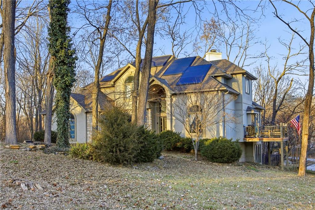 Discover the perfect family retreat in the safe, amenity-rich community of Weatherby Lake. This home combines modern luxury with high-tech efficiency, featuring 2021 upgrades including solar power and a Tesla Power Bank. The open main level is highlighted by a soaring wall of windows, gleaming hardwoods, and a custom kitchen with quartz counters. Retreat to the first-floor master with a spa-like tub, or entertain in the walk-out basement with a custom bar. The basement is ready for your finishing touches, offering a great opportunity to customize the flooring and style to your exact taste. The spacious lot is a nature lover's paradise with established trees, a koi pond, and a wrought-iron fence. Includes a unique double-door storage area for all your lake "toys." Live where every day feels like a getaway.