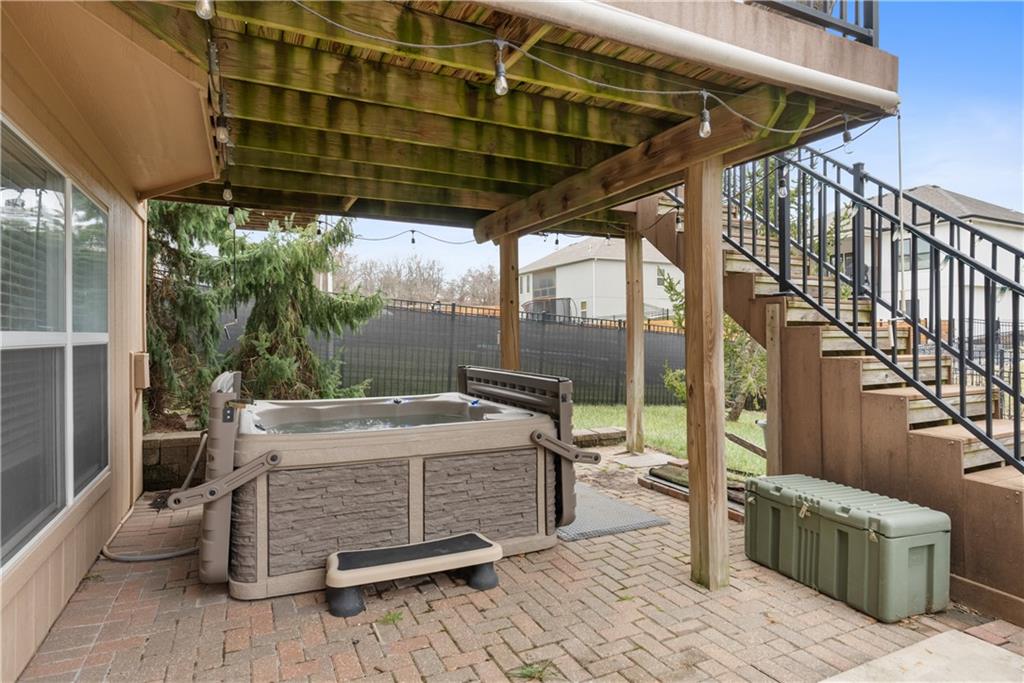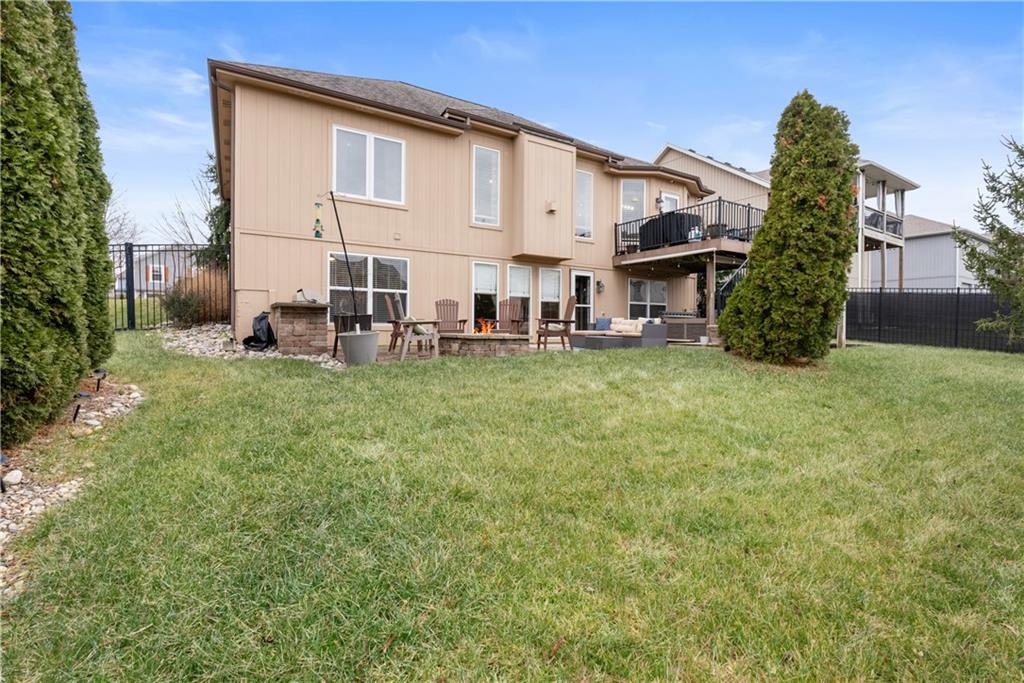This 4 bedroom, 2.5 bath reverse ranch offers the perfect blend of open-concept living and thoughtful upgrades throughout. The main level features a spacious layout ideal for gatherings, highlighted by granite countertops, a large laundry room on the main floor, and a private primary suite. The primary bath is a true retreat with heated floors, whirlpool tub, a large walk-in closet and shower designed for relaxation. The finished walkout basement expands your living space with three additional bedrooms, a Jack & Jill bathroom, plenty of storage, a bar, and an impressive wine cellar perfect for hosting or unwinding at home. Step outside to an entertainer’s dream backyard featuring a large patio with a built-in gas fireplace and cooktop, ideal for BBQs and evening get-togethers. The maintenance-free composite deck adds even more outdoor living space, and for those chilly Missouri nights, enjoy the hot tub that stays with the home. Located in the welcoming Rosehill neighborhood, residents enjoy access to a community pool and a great sense of community. This home checks every box for comfort, function, and lifestyle don’t miss your opportunity to make it yours.