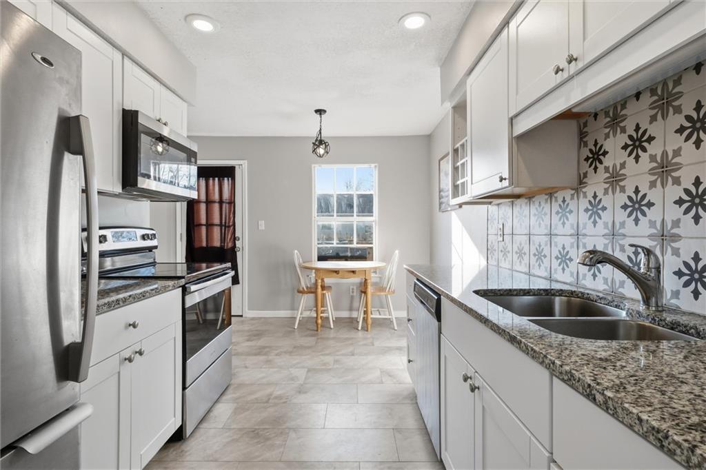 Welcome home to this beautifully refreshed two-story townhome located in a well-maintained community close to shopping, dining, and everyday conveniences. Step inside to find newer flooring and fresh, neutral paint throughout, creating a bright and inviting feel. The completely remodeled kitchen features modern white cabinetry, stylish tile backsplash, and granite countertops. Enjoy easy indoor-outdoor living with a private deck just off the kitchen, perfect for morning coffee or evening relaxation. Upstairs offers three bedrooms, including a spacious primary suite with private en-suite bath and large walk-in closet. The finished basement provides extra living or recreation space and includes direct access to the one-car garage. Best of all—NO exterior maintenance! HOA covers roof and siding maintenance, lawn care, snow removal, and even the monthly water bill. Move-in ready, affordable, and low-maintenance—this one checks all the boxes. Schedule your showing today!