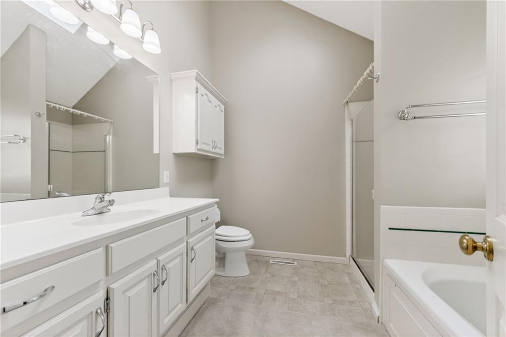 Well-cared-for 3-bedroom, 3 bath home with a 3-car garage and a fenced backyard designed for both relaxing and entertaining. Enjoy the covered deck overlooking the yard, complete with a shed and decorative fountain. Inside, the home is filled with natural light and features a functional, open layout. The kitchen offers abundant cabinetry, newer countertops, a pantry, and peninsula for additional workspace and seating. Main-floor laundry adds everyday convenience. The primary suite includes a jetted tub, separate shower, and an AMAZING walk-in closet with a custom closet system.All bedrooms and the coat closet also feature built-in organization systems. The finished lower level provides extra living space, a full bath, and ample storage. Recent updates include added insulation (R19 in garage ceiling & R 50 in attic) and a new roof in 2024. This home reflects pride of ownership throughout.