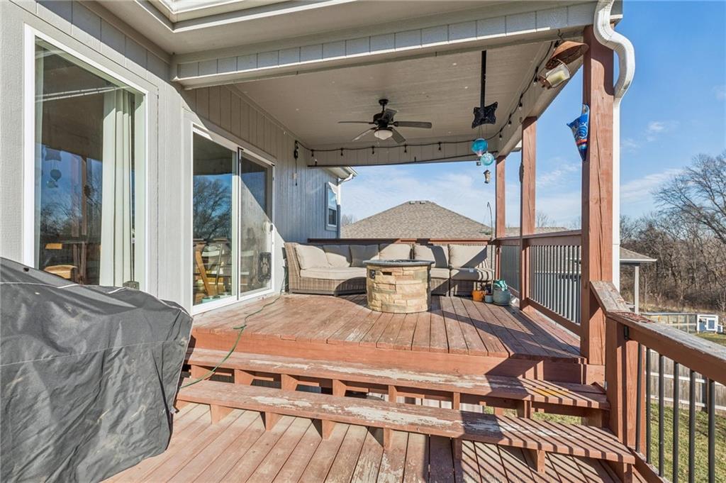 Beautifully maintained, only 6-year-old split-entry home in Liberty! This 3-bedroom, 3-full-bath property offers an open and inviting layout with wood flooring throughout the kitchen and dining area, complemented by granite countertops. Each bathroom features tile flooring and tile shower surrounds for a clean, modern feel. Enjoy outdoor living in the large backyard with a covered deck and patio—perfect for entertaining or relaxing. Conveniently located with easy access to local amenities, this home combines modern finishes with comfortable living.