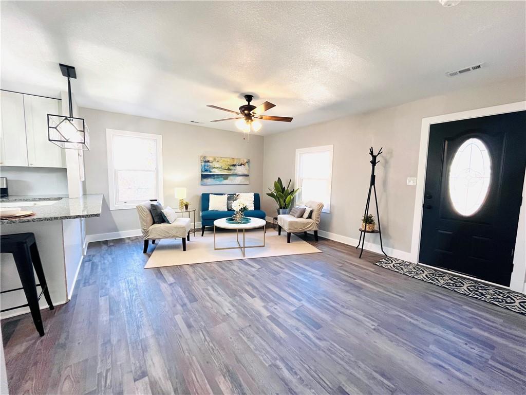 Completely remodeled ranch home with so much NEW! Welcome home to one level living with NEW kitchen with white cabinets, granite countertops, undermount sink, stainless appliances (dishwasher, gas 5 burner stove, microwave) and open to the living room. New luxury low maintenance vinyl plank flooring throughout, fresh paint, new solid wood doors with black hardware, new heating and central air conditioning system, brand new gorgeous bathroom with oversized tile shower and extra storage. Deep closets in the bedrooms with organizing systems and convenient laundry near bedrooms. Large nearly 1/4 acre privacy fenced yard with dry shed in quiet neighborhood near shops, schools and parks.