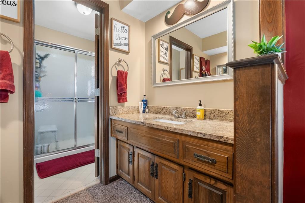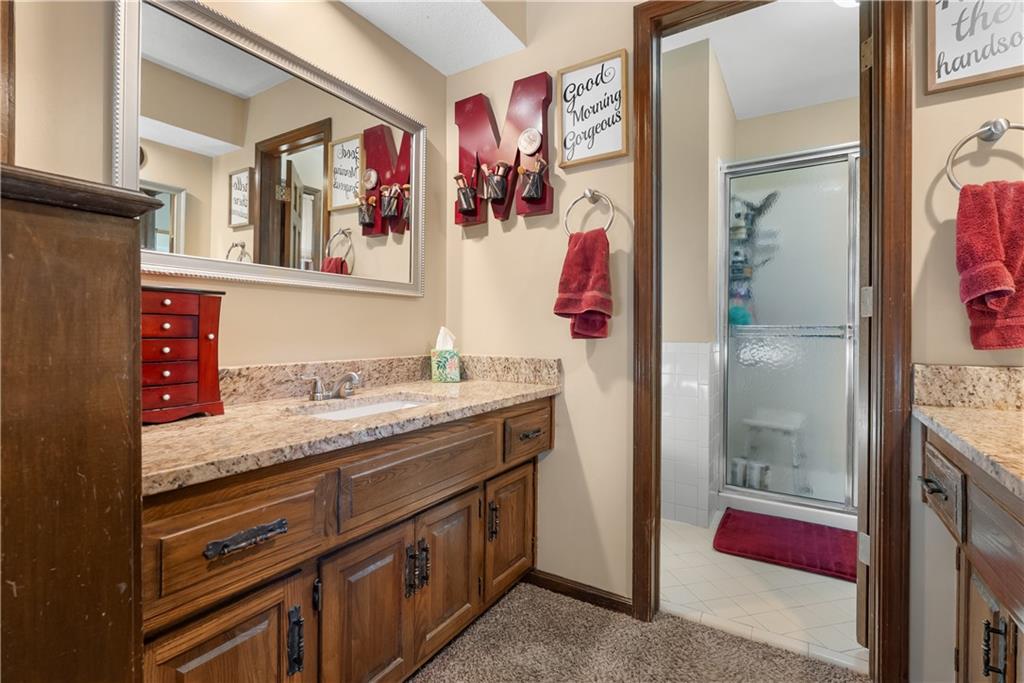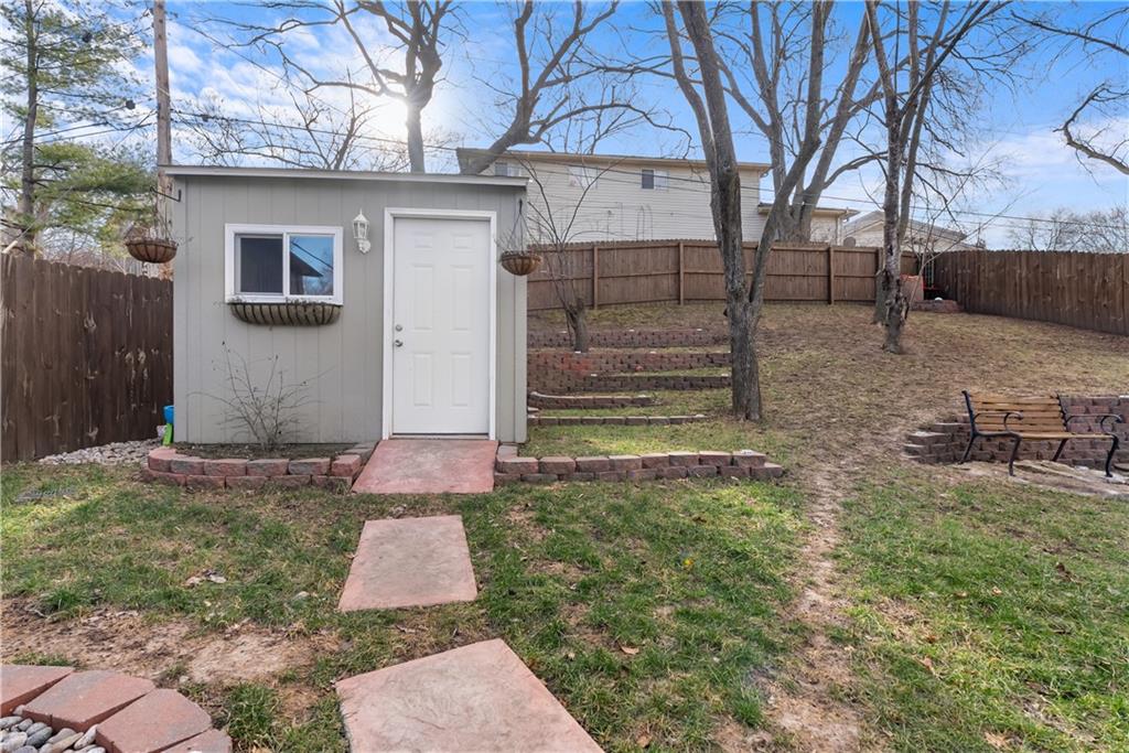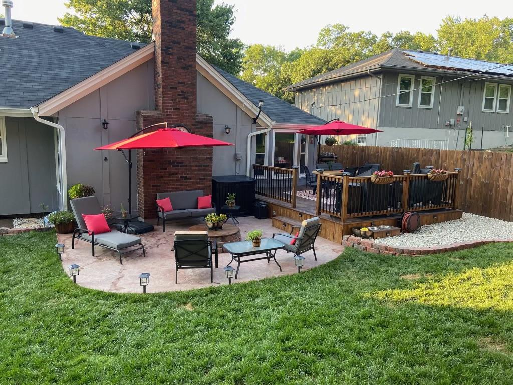 Welcome home to this very well loved and maintained home close to red bridge shops and south KC. It’s the entertainers dream featuring one of the best back lots around. Large deck, stamped concrete and tiered stone with outdoor lighting and workshop shed. Great floor plan inside with updated kitchen, fresh paint, tons of wood character and large primary suite. Downstairs is stocked with a custom built in bar, perfect for theatre and second living room options and stubbed and ready for a third full bathroom and workout room. Garage has an additional work shop built in.