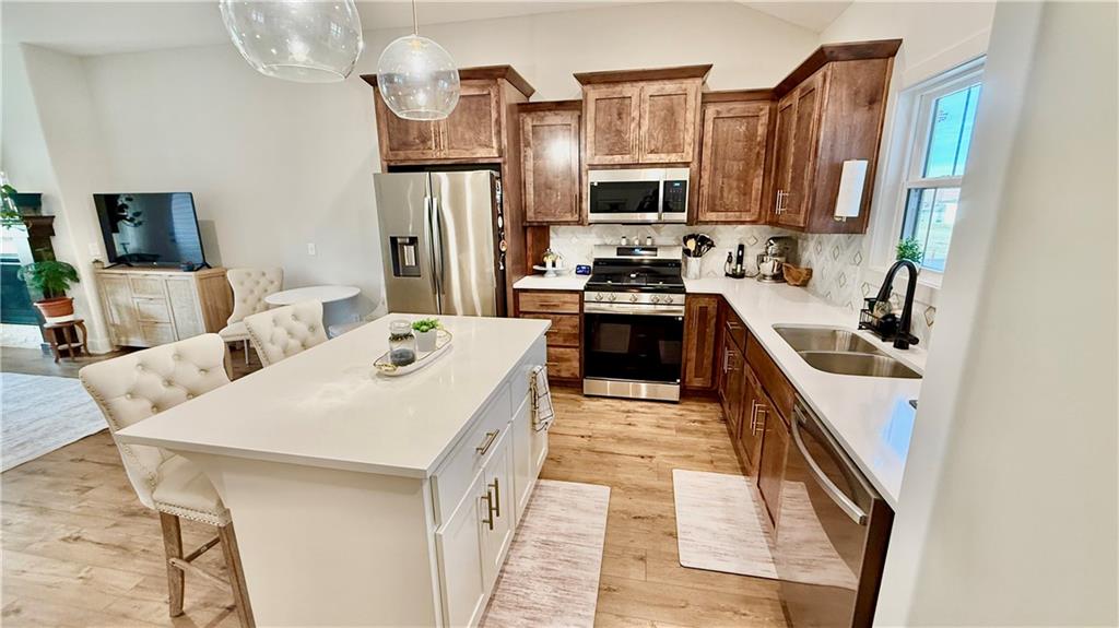 Welcome to this stunning 2-bedroom, 2-bathroom townhome in the sought-after Greens of Ashland community. Built less than a year ago, this home feels practically brand new and offers a perfect blend of comfort and modern style. Step inside to a bright, open floor plan featuring a custom tile kitchen with beautiful finishes and ample storage ideal for both everyday living and entertaining. The cozy fireplace and built-in bookshelf create a warm, inviting living space. Enjoy your mornings on the front porch watching the sunrise, and unwind in the evenings on the covered back patio, perfect for relaxing or hosting friends. With lawn care and snow removal included, you’ll have more time to enjoy everything this low-maintenance lifestyle has to offer. Don’t miss your chance to own this charming, move-in-ready home in a peaceful, convenient location!
