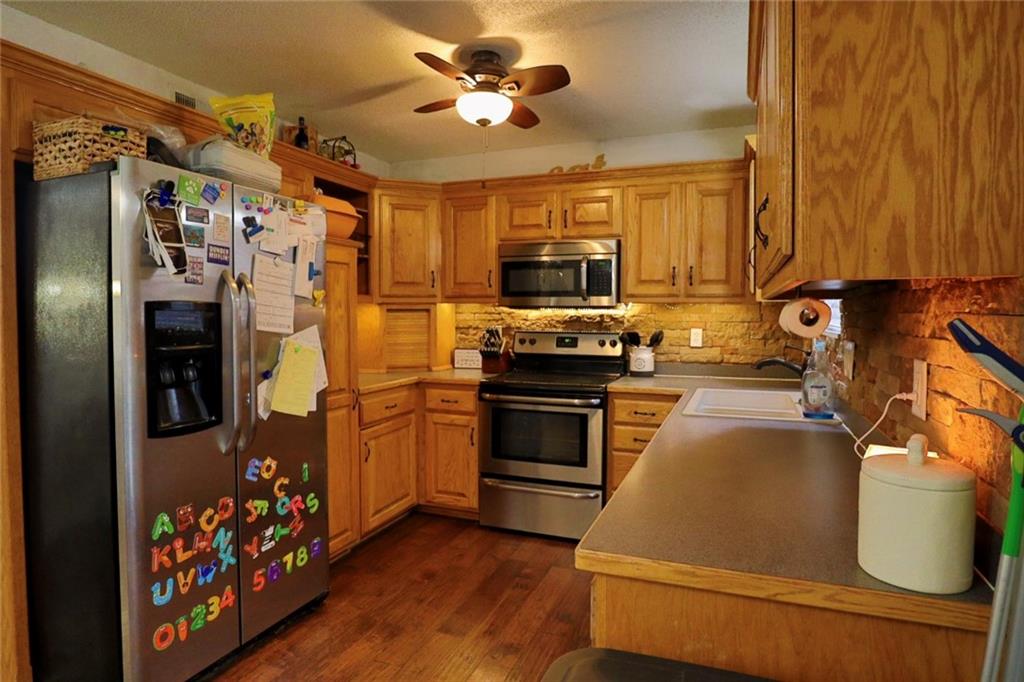 Well-maintained split-entry home featuring an open kitchen and dining area with stainless steel appliances and stone backsplash. Inviting living space with a built-in fireplace feature. Primary bedroom offers a walk-in closet and access to the hall bath. Brand new roof! Low-maintenance exterior and a spacious 0.46 acre lot with room to enjoy the outdoors. Conveniently located near parks and everyday amenities.