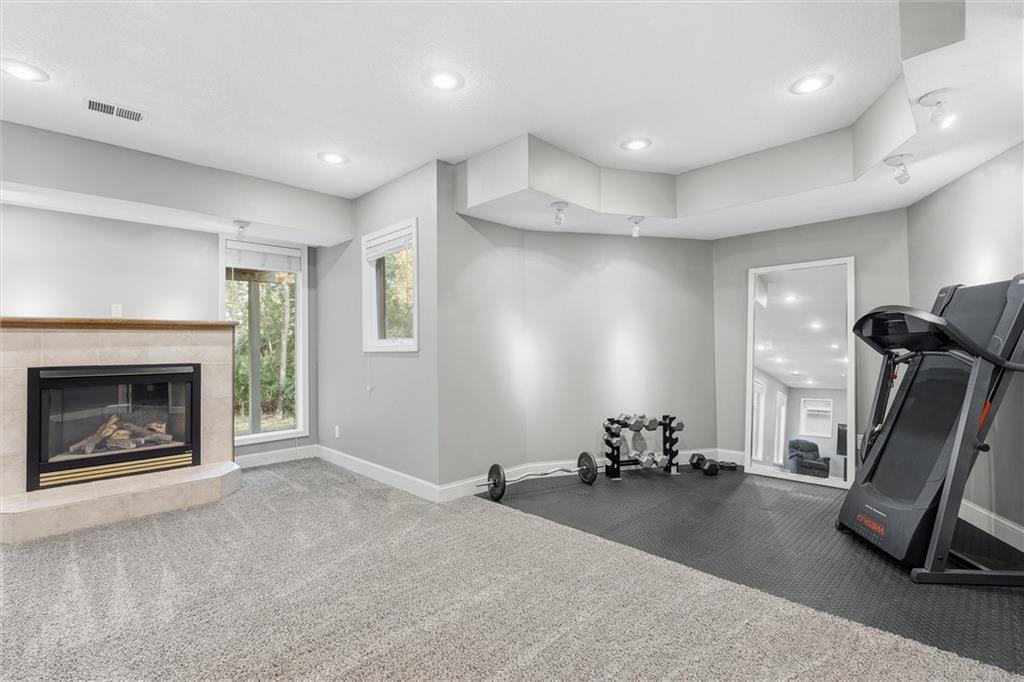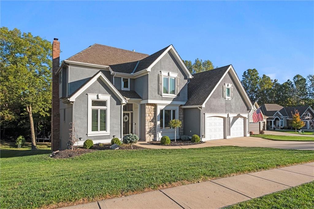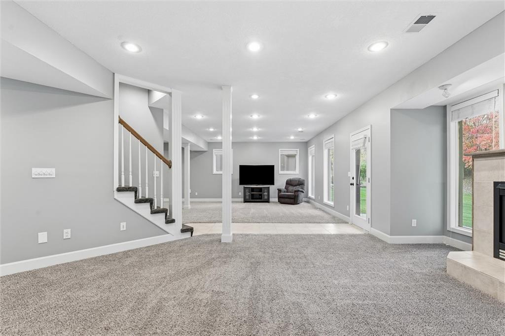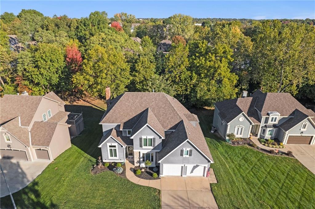 Beautifully Updated 2-Story in Coveted Riss Lake! Perfectly positioned on a quiet cul-de-sac, this home offers the ideal blend of comfort, style, and thoughtful updates throughout. The main floor features an open layout with seamless flow between living, dining and kitchen spaces. The living room features a cozy fireplace and tons of natural light from the floor-to-ceiling windows. The spacious kitchen offers wrap-around counters and cabinetry, a large island, built-in hutch, and an open dining area that leads out to the upper deck — perfect for entertaining. The main floor is completed by a formal dining room, private home office, and a convenient laundry room just off the garage, thoughtfully designed for everyday ease. The upstairs primary suite enjoys its own elevated, private level and includes a walk-in tiled shower, jetted tub, and dual vanities. Each of the three secondary bedrooms includes a walk-in closet and convenient bathroom access, with one offering a private ensuite and the other two sharing a Jack-and-Jill bath. Designed for entertaining, the finished lower level features a spacious family room with fireplace and custom built-ins, open rec space, and a wet bar. A full bath and walk-out access to the patio and tree-lined backyard complete this beautiful extension of the home. Additional highlights include a 3-car tandem garage and beautiful mature trees surrounding the property. Enjoy the exceptional Riss Lake community with lake access, pools, tennis courts, and trails — all from a peaceful cul-de-sac location.