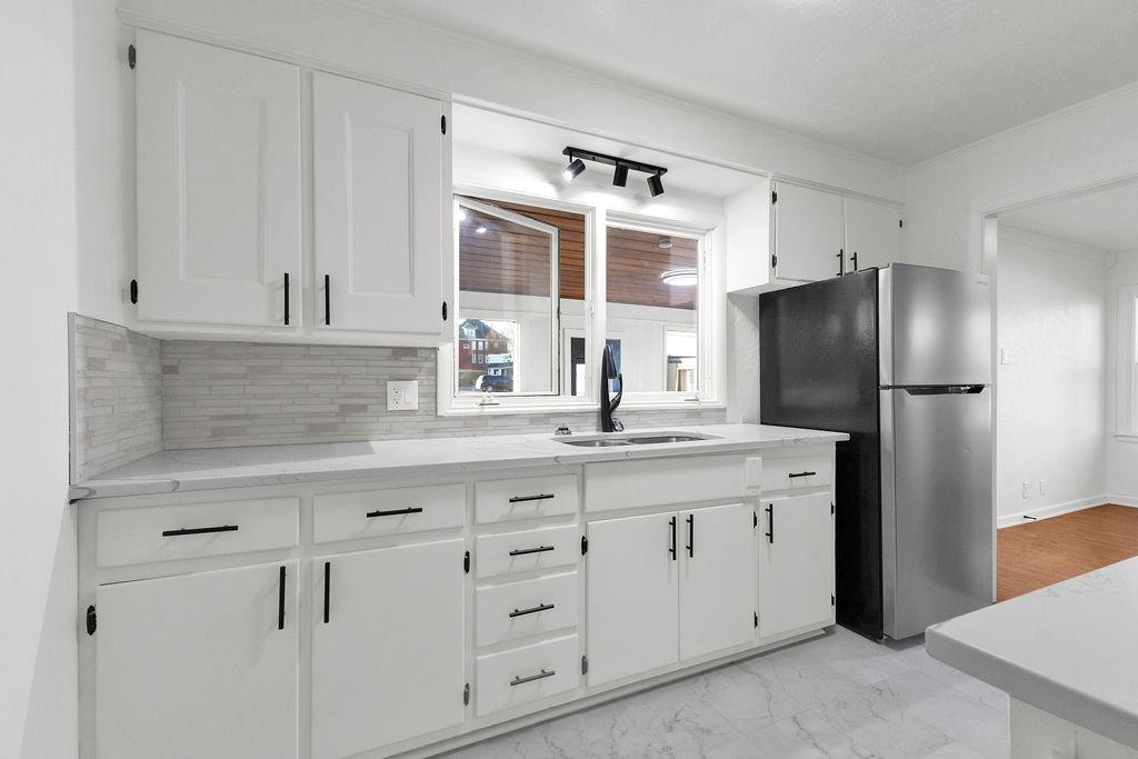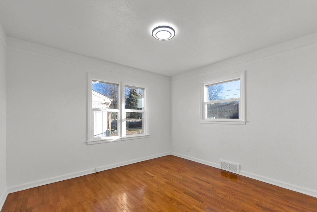 This recently updated 3 bedroom home (plus a 4th non-conforming room in the basement) offers plenty of living space and potential. Inside, you'll find hardwood floors, a bright living room, and a functional updated kitchen with a stove and refrigerator. The main floor includes 1 full bath (plus a 1/2 in the basement), convenient laundry, and a sunroom for extra living space or storage. The basement provides additional flexible space for a rec room or home office. Outside, enjoy a covered front porch, detached 1-car garage, and a spacious yard.