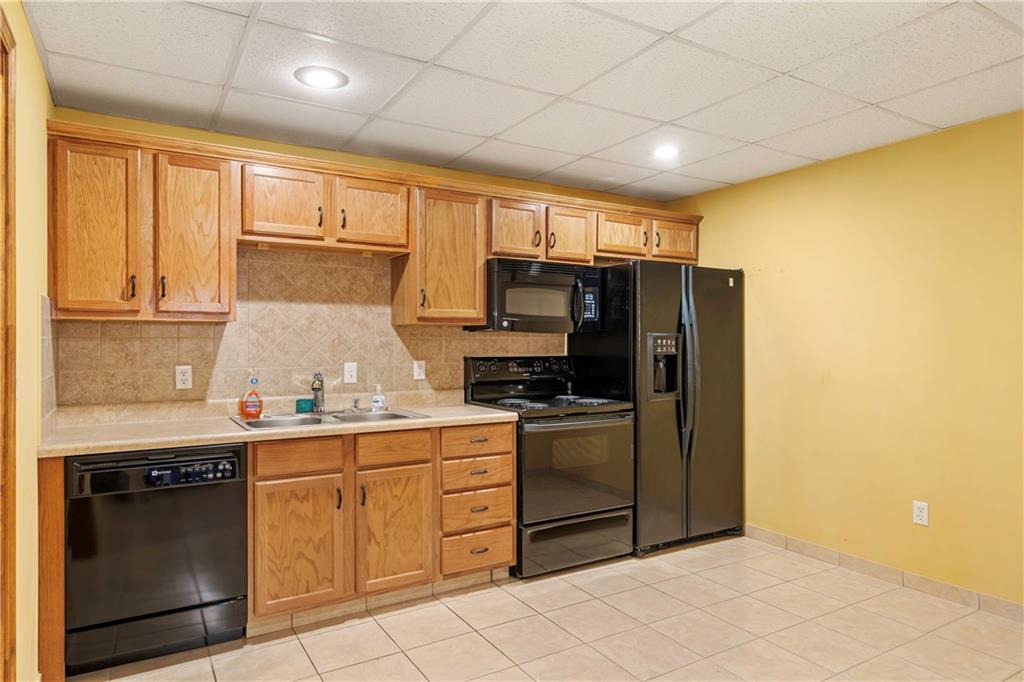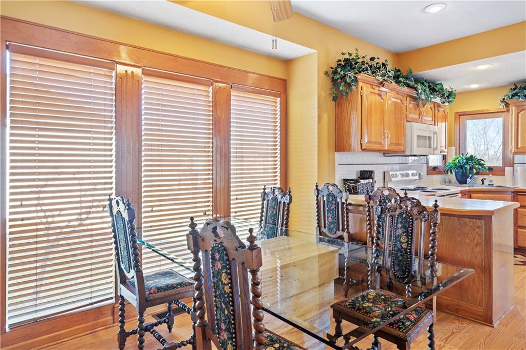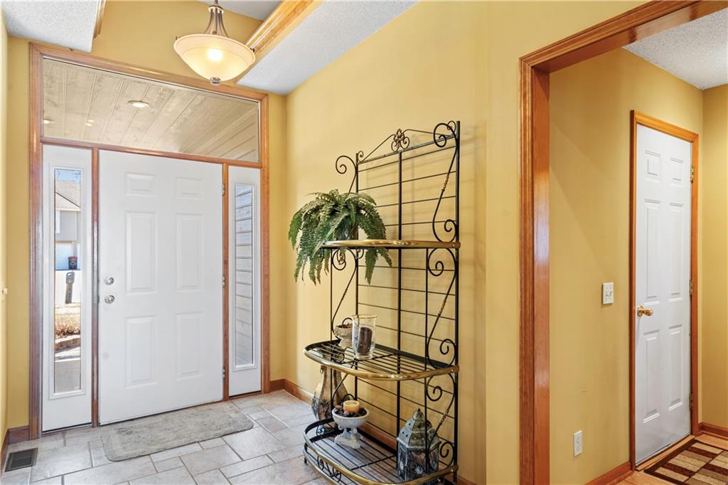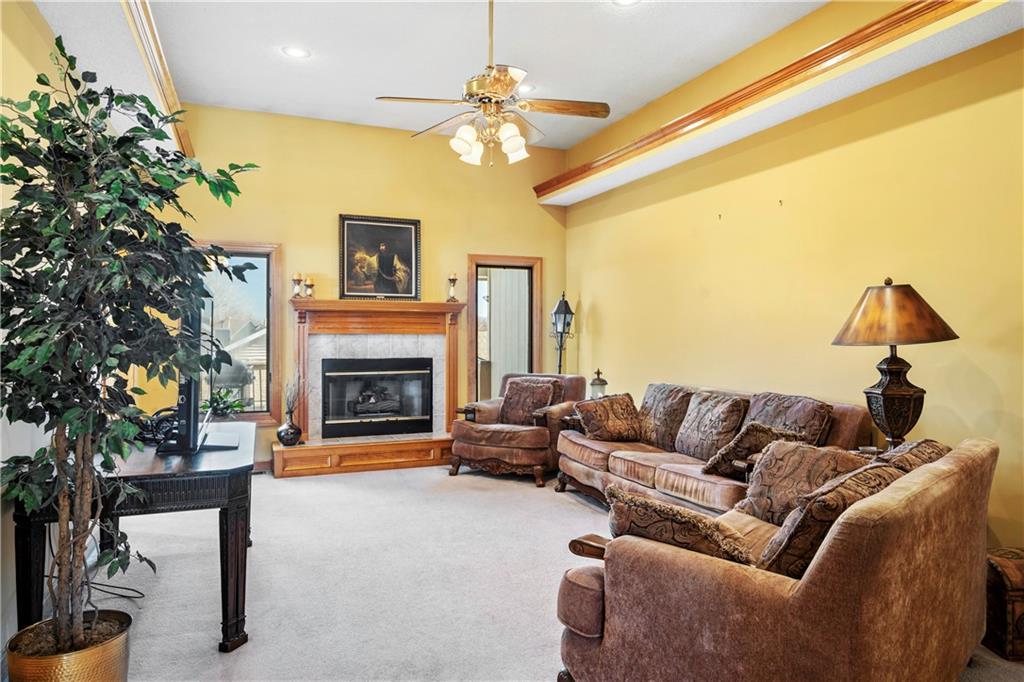 This well-maintained 4-bedroom, 3-bath ranch home is situated on a corner lot in the Marimack subdivision of Kearney Missouri and offers a thoughtfully designed layout with a finished walk-out lower level. Built in 2000, the home has been kept in impeccable condition. The main level features an inviting atrium entry, a spacious living room, and a primary bedroom with an en-suite bathroom. Hardwood floors run throughout the kitchen, with tile bathrooms, and carpeted living areas and bedrooms. There are two additional bedrooms on the main level, with access to a second full bathroom. The kitchen includes an eat-in breakfast area and is conveniently located near the main-level laundry room. Outdoor living spaces on this level include a front porch and a deck overlooking the property. The finished lower level expands the living space to a total of 2,357 sq ft, with an additional bedroom, bathroom, a den, dining area, and a second kitchen. Two storage rooms and a utility room with additional laundry hookups and ventilation provide flexibility for a variety of uses. The lower level also offers grade level exterior access to a screened-in patio. Parking and storage options include a two-car garage on the main level with interior access, as well as a second driveway leading to an additional garage on the lower level, also accessible from inside the home. This property offers multiple indoor and outdoor spaces, flexible living areas, and convenient access between levels, located minutes from local shops, restaurants, and the Marimack Golf Course.