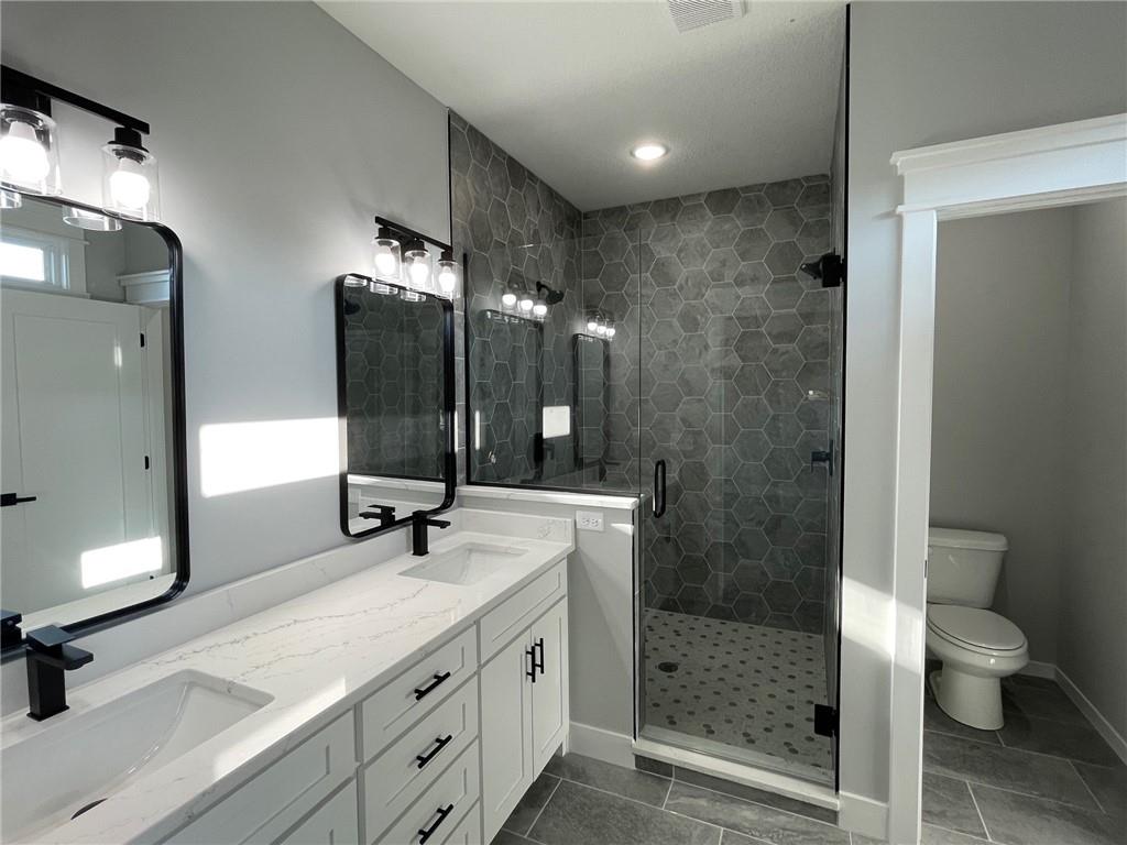 Brand new construction ranch offering 3 bedrooms and 2 bathrooms with modern design and quality craftsmanship throughout. Open-concept layout features a spacious living area highlighted by a stone fireplace and abundant natural light. The kitchen showcases white cabinetry, a large center island, ample storage, and contemporary finishes—perfect for everyday living and entertaining. Private primary suite includes a stylish tray ceiling and en-suite bath. Additional bedrooms are generously sized and versatile for guests or home office needs. Attractive curb appeal with covered front porch, attached garage, and new concrete drive. Move-in ready and thoughtfully designed for comfort and functionality.