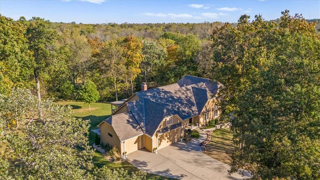 Tucked away at the end of a peaceful cul-de-sac near Lake Lotawana, this exceptional 4-bedroom, 5-bath home offers privacy, space, and thoughtful design with over 4000 finished sqft on over 2 acres. A true retreat, the property features a serene back deck overlooking the expansive acreage—perfect for morning coffee, entertaining, or simply enjoying the quiet setting. Inside, you’ll find a flexible layout with a bonus office ideal for working from home. The primary wing is a standout, featuring dual bathrooms, two walk-in closets, and a private laundry room for ultimate convenience. Car enthusiasts and hobbyists will love the five-car garage setup, including three front-facing garages and two additional garages tucked behind the home—perfect for storage, recreational vehicles, or workshop space. Located on a quiet street in a highly desirable Lake Lotawana area of Lee’s Summit, this home blends luxury, function, and peaceful country living just minutes from city amenities.