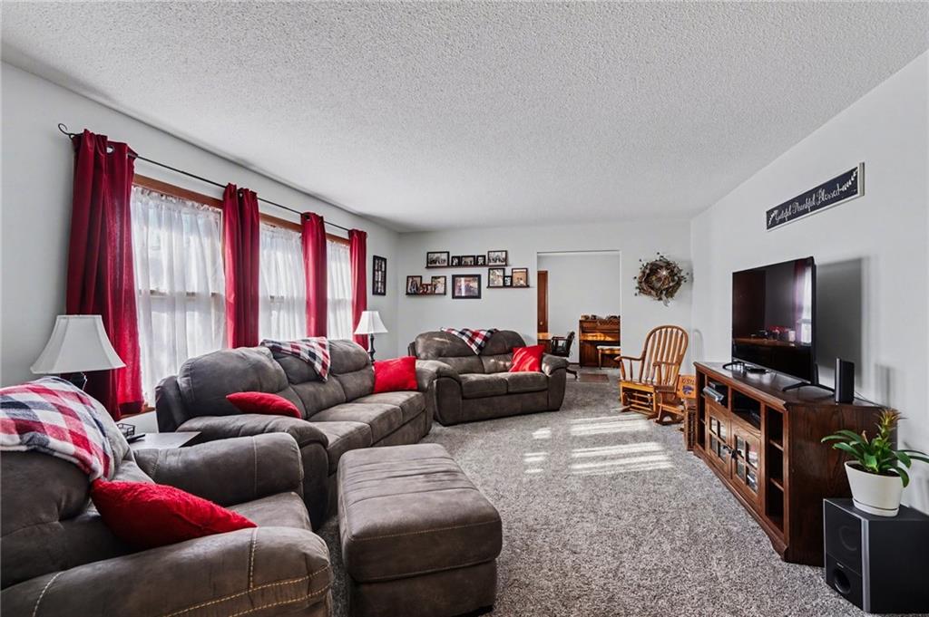 Beautifully updated ranch home with extensive improvements throughout. Updates include new flooring, remodeled kitchen, updated siding, roof and new guttering. Both bathrooms and the laundry room have been remodeled. Home features all new exterior doors, including sliding door and garage door, plus an HVAC system installed in 2015. The partially finished basement offers a conforming bedroom and lots of storage room and with a walk-up exit. Additional highlights include a new metal shop, new carpet and vinyl flooring, foundation repair completed in 2023, yard re-seeded and leveled in 2024, and a new deck added in 2024. Enjoy the hearth room with a beautiful brick fireplace. Located in town yet offering a country feel, with space for cattle or horses—or the option to rent out the back pasture. Pond on property. Truly move-in ready with the convenience of town living and the charm of the countryside.