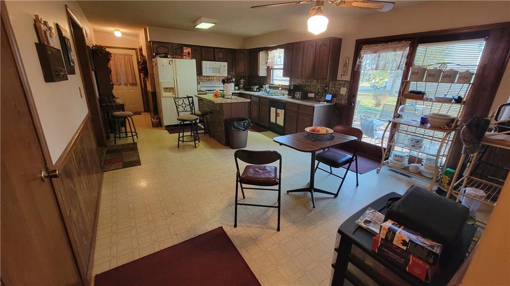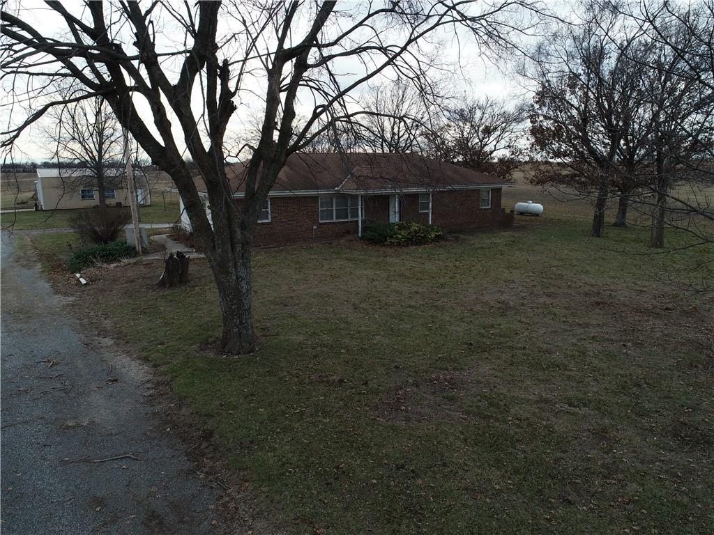 Ready to move to the country? With 5 acres +/-, this 3 bedroom, 2 full bathroom ranch is a great place to start! It is being sold as is, but the sweat equity in this all-brick front home is abundant. Spacious kitchen with lots of cabinet space, an island and all appliances provided. Large living room with a brick, wood burning fireplace. The basement has 3 ways to gain access - one is through the garage, one is from the outside and one is a spiral staircase from the living room. The downstairs also features a second kitchen and a second laundry room, great for guests! When you walk out the back door, you will see the large 30'x18' concrete patio, great for entertaining or enjoying morning coffee. Keep going and head out to the 48'x40' shop 12'x10' southside. The shop is divided down the middle with concrete floors throughout 12'x14' heated and has lots of storage up on the mezzanine and in the parts room. The other side of the shop has a separate room divided 12'x10' also with lots of mezzanine storage. There is also a 32'x27' lean-to shed for equipment storage or would be great for livestock. Come take a look at this property, it's on blacktop!