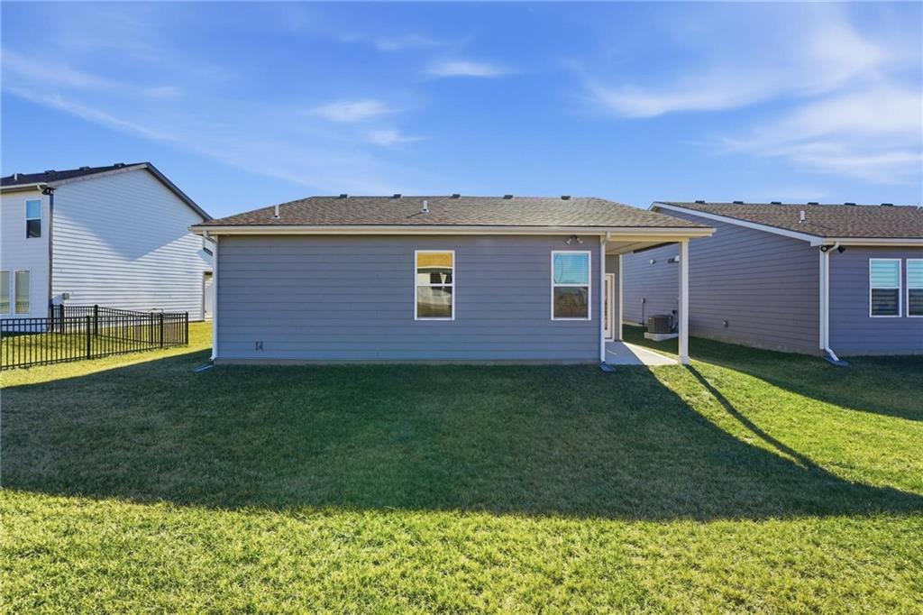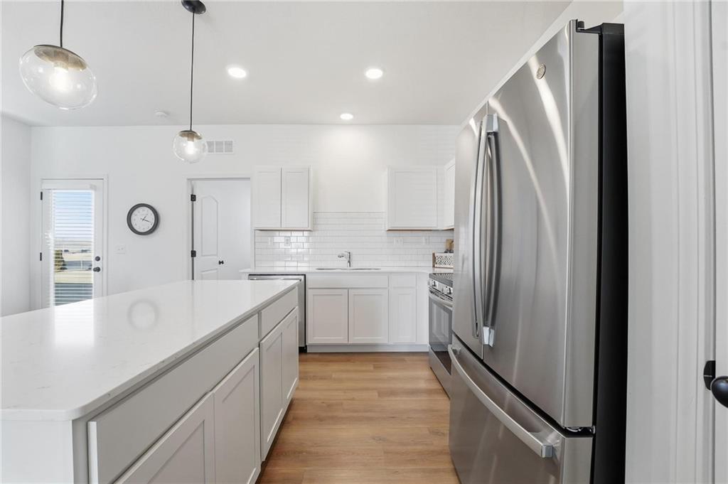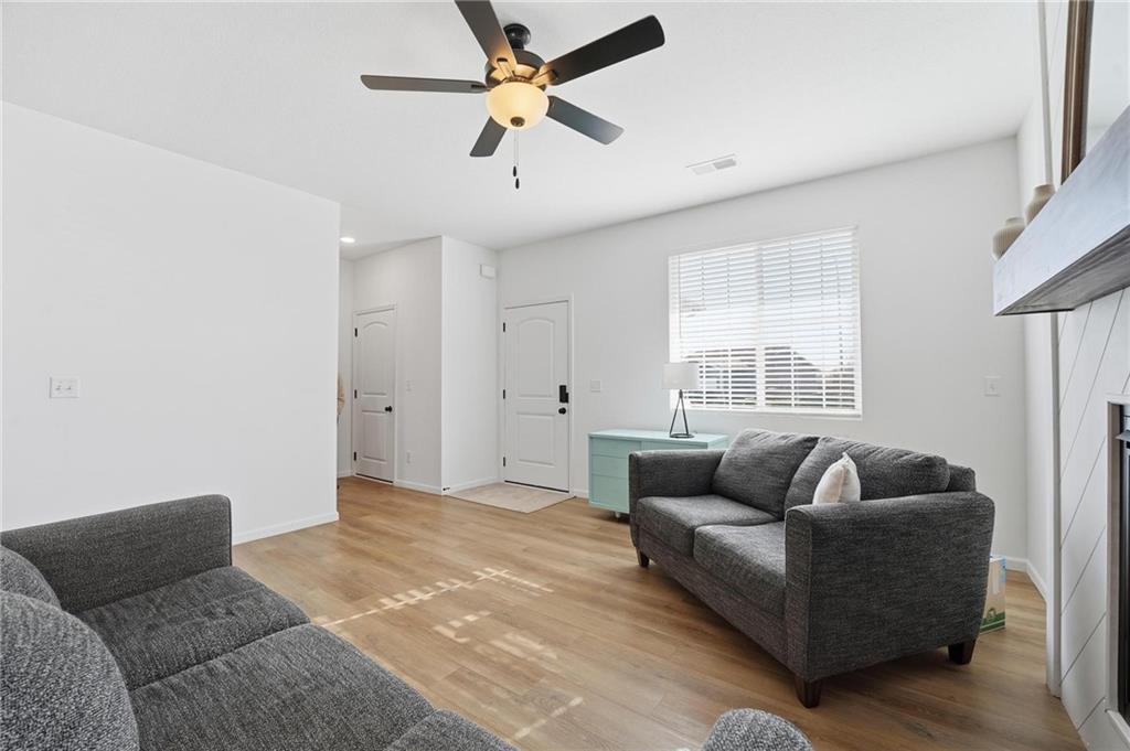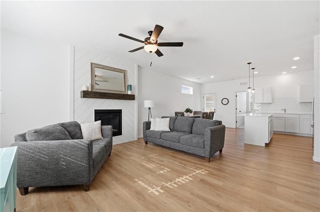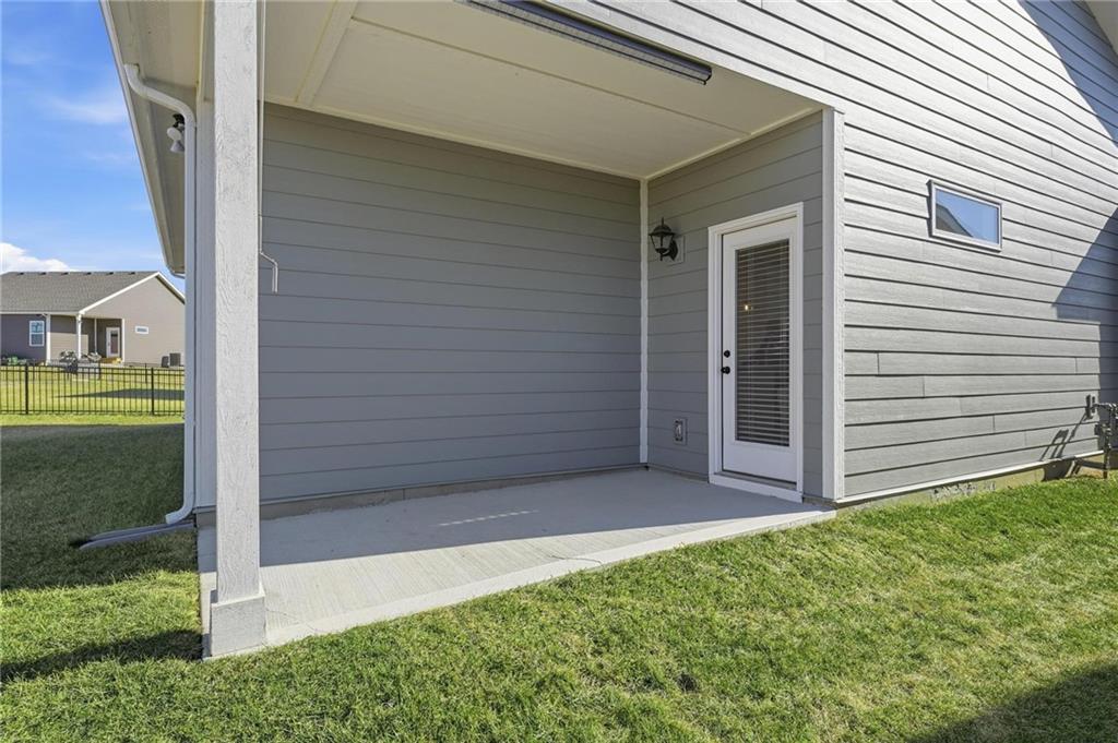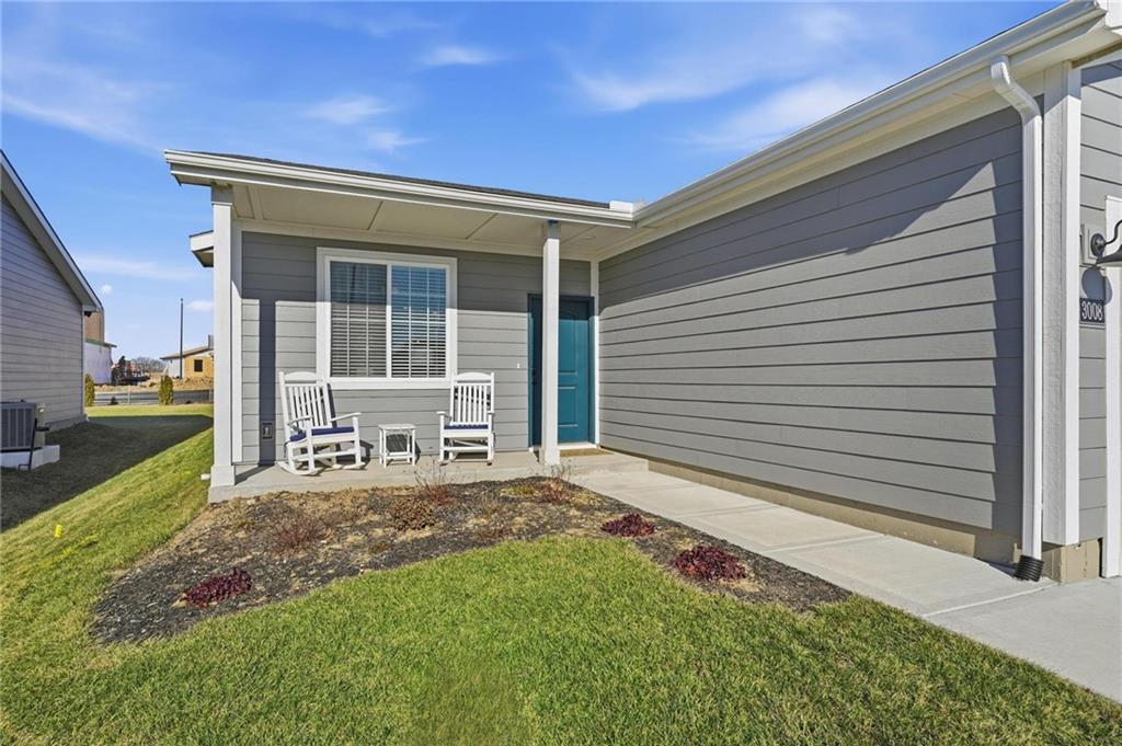 Better than new - UPGRADES and priced well below reproduction! Gorgeous ranch is open and bright. Welcoming front porch offers opportunity to sit out front. Through front door, open living space with clean white walls, shiplap surrounds the gas fireplace! Kitchen has large center island, upgraded QUARTZ countertops, subway tile backsplash, stainless steel appliances and great pantry! Spacious dining area has large window allowing natural light. Full glass door out to covered patio & level backyard. The primary suite is at the back of the home for quiet privacy. Large bedroom has high ceiling, fantastic walk-in closet! The private bath has double vanity, huge shower, LVP flooring. There are 2 additional bedrooms on other side of home, with walk-in closets! The hall bath has same LVP flooring (looks like wide plank wood), shower/tub. Spacious laundry room on the main level has great storage space. The 2 car garage has upgraded garage door opener! Why wait and build, and spend a lot more, when this beautiful home is ready NOW.