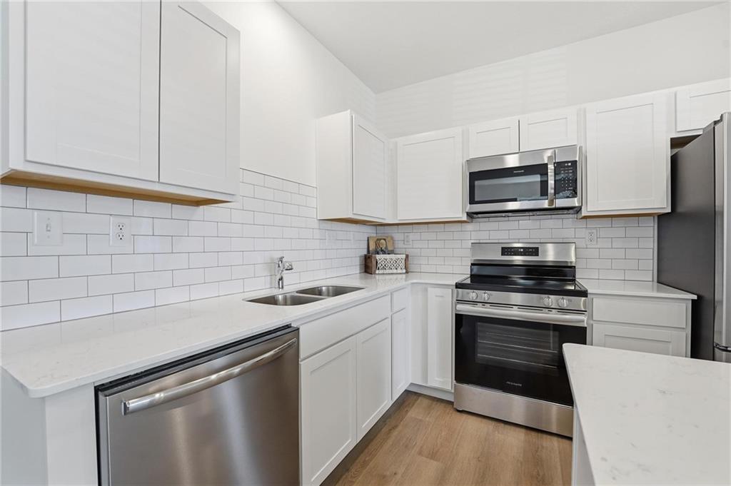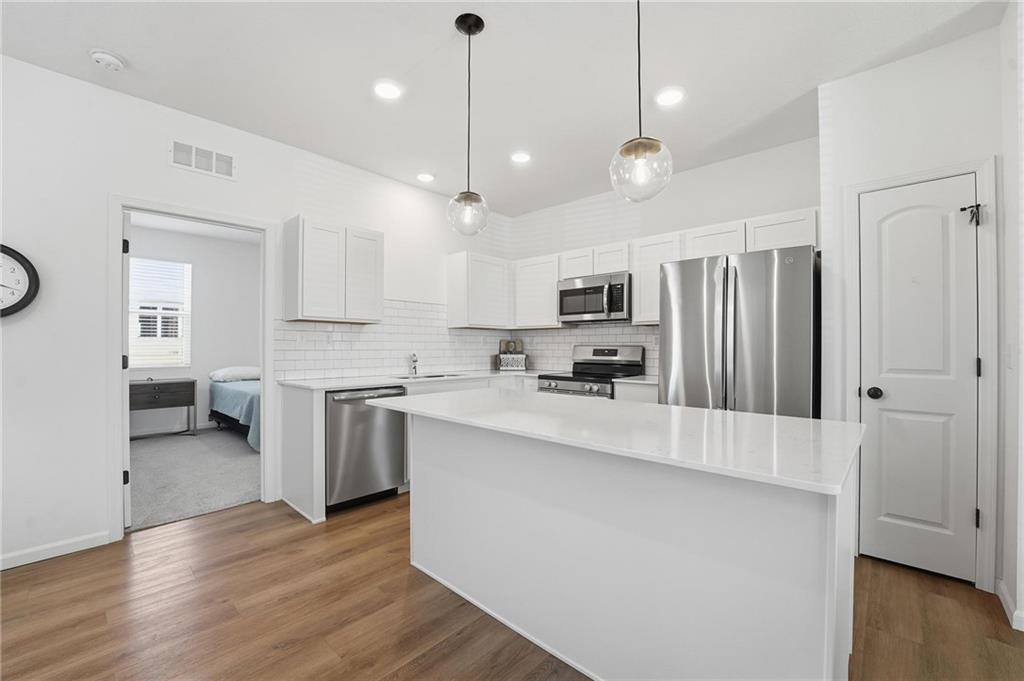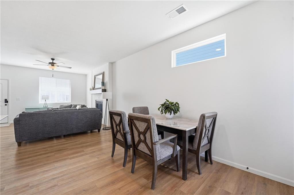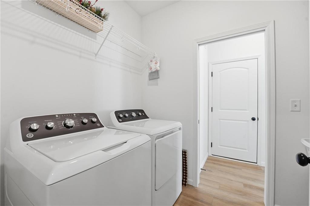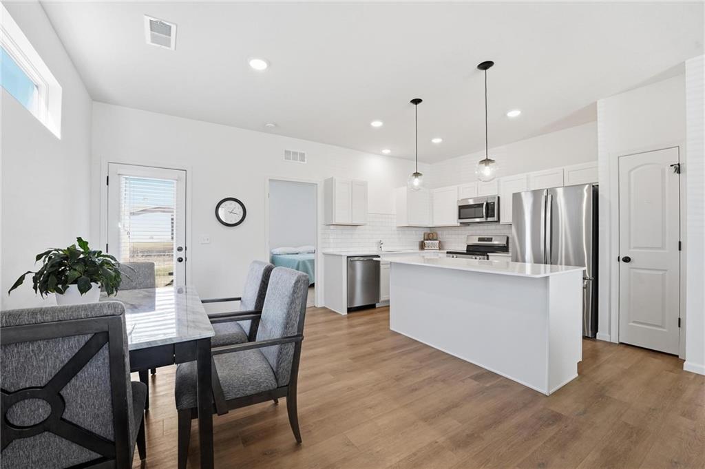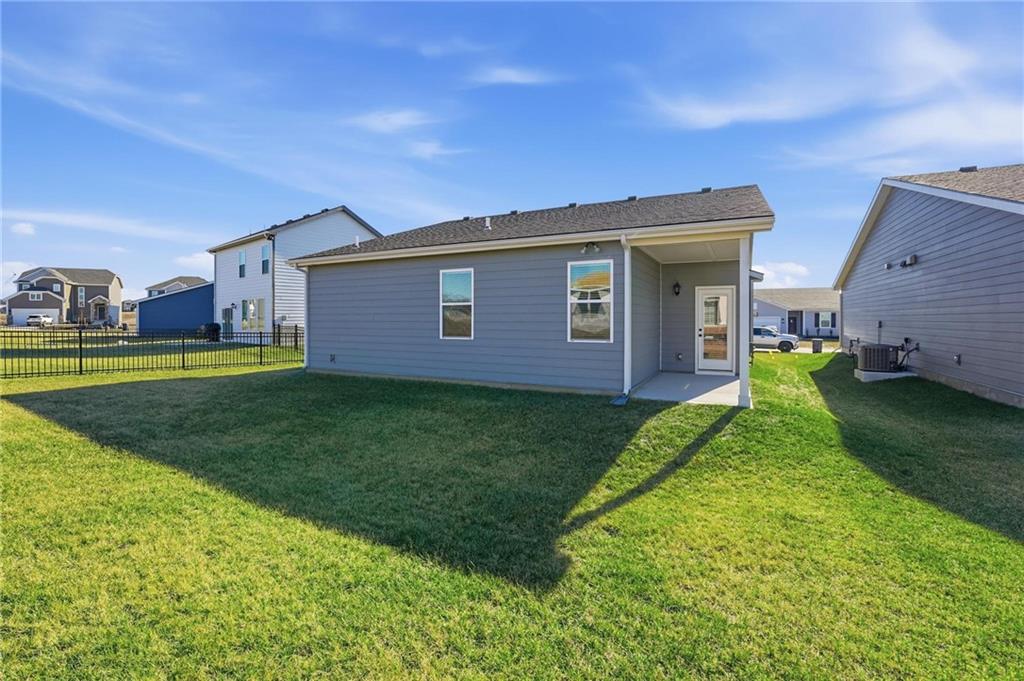 Better than new - UPGRADES and priced well below reproduction! Gorgeous ranch is open and bright. Welcoming front porch offers opportunity to sit out front. Through front door, open living space with clean white walls, shiplap surrounds the gas fireplace! Kitchen has large center island, upgraded QUARTZ countertops, subway tile backsplash, stainless steel appliances and great pantry! Spacious dining area has large window allowing natural light. Full glass door out to covered patio & level backyard. The primary suite is at the back of the home for quiet privacy. Large bedroom has high ceiling, fantastic walk-in closet! The private bath has double vanity, huge shower, LVP flooring. There are 2 additional bedrooms on other side of home, with walk-in closets! The hall bath has same LVP flooring (looks like wide plank wood), shower/tub. Spacious laundry room on the main level has great storage space. The 2 car garage has upgraded garage door opener! Why wait and build, and spend a lot more, when this beautiful home is ready NOW.