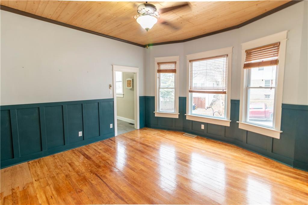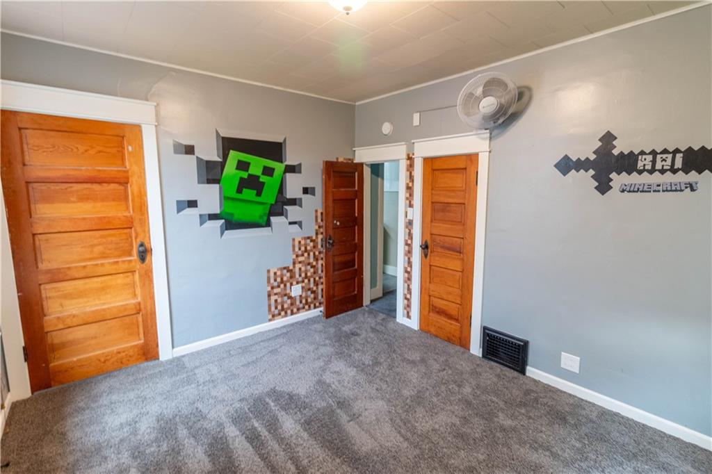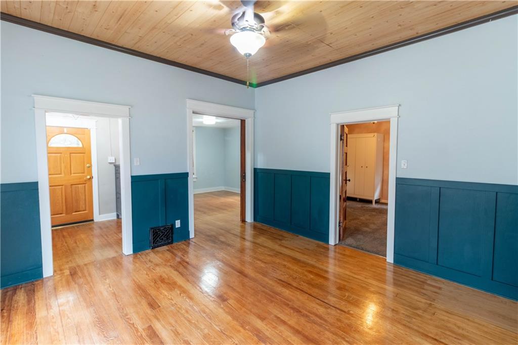 This spacious four-bedroom home offers a thoughtful layout with two bedrooms upstairs and two downstairs, along with two full bathrooms—one on each level—for added convenience. All rooms are generously sized, creating a comfortable and open feel throughout the home. Inside, you’ll find hardwood floors, solid-surface countertops, and newly painted cabinets that give the interior a fresh, updated look. The upstairs also features a large central room between the two bedrooms, ideal for a home office, media space, or additional family area. A large, covered front porch provides a welcoming place to relax and enjoy the outdoors. The property includes owned and fully paid-for solar panels, which significantly reduce electric bills, as well as a detached two-car garage with an expansive above-garage storage area perfect for extra storage or hobbies.