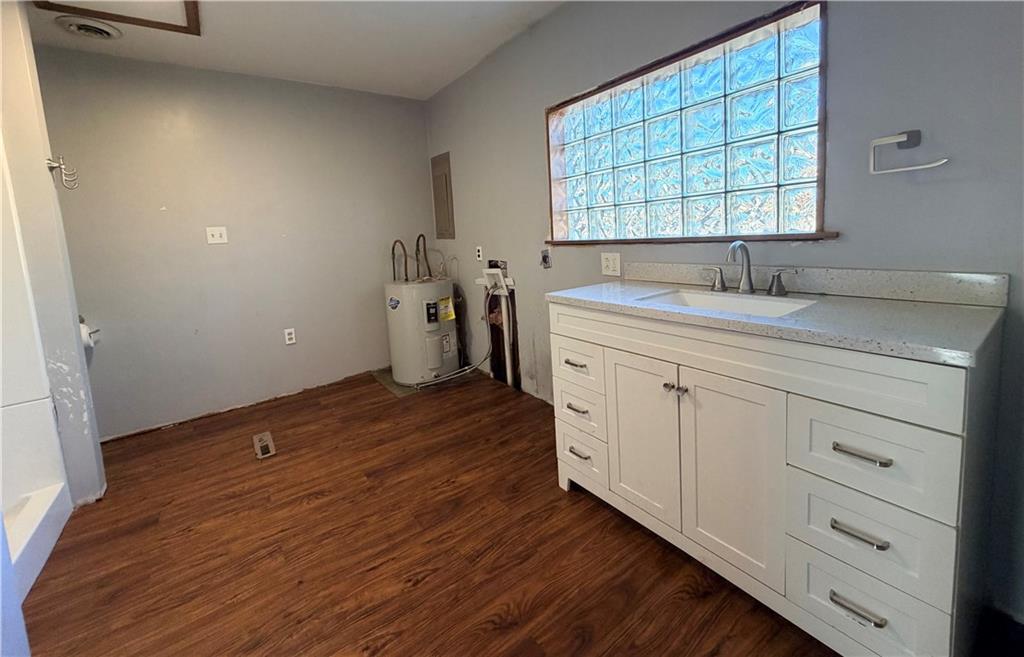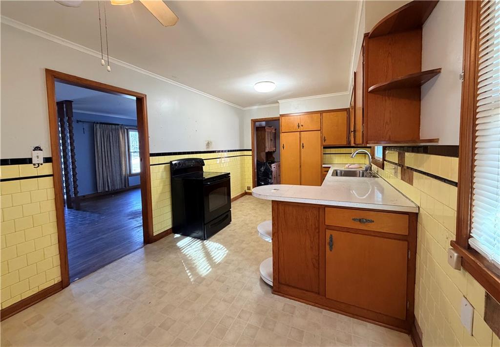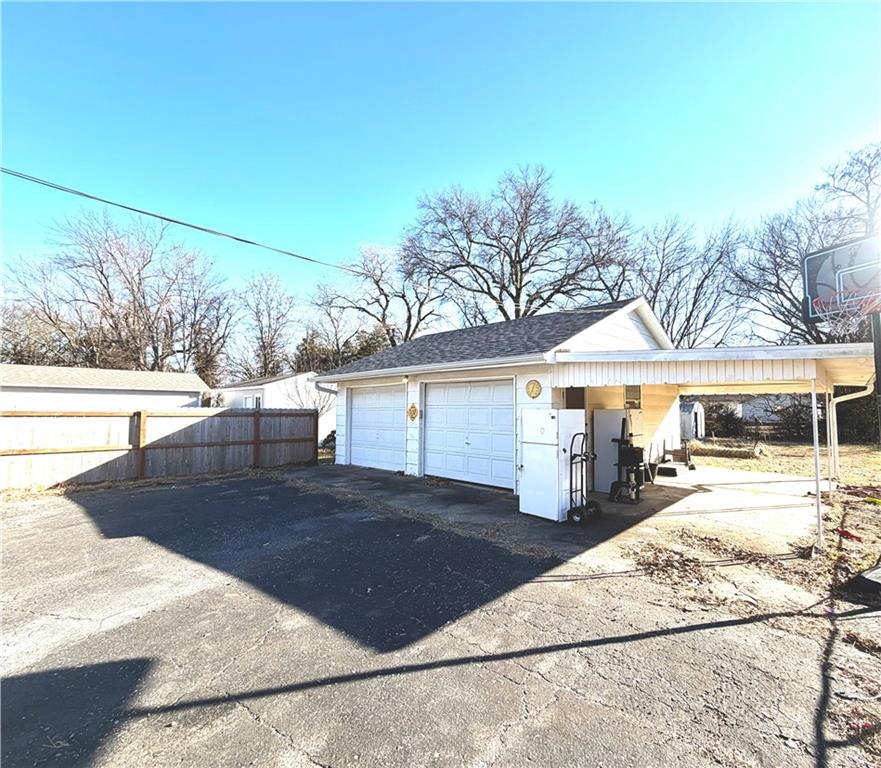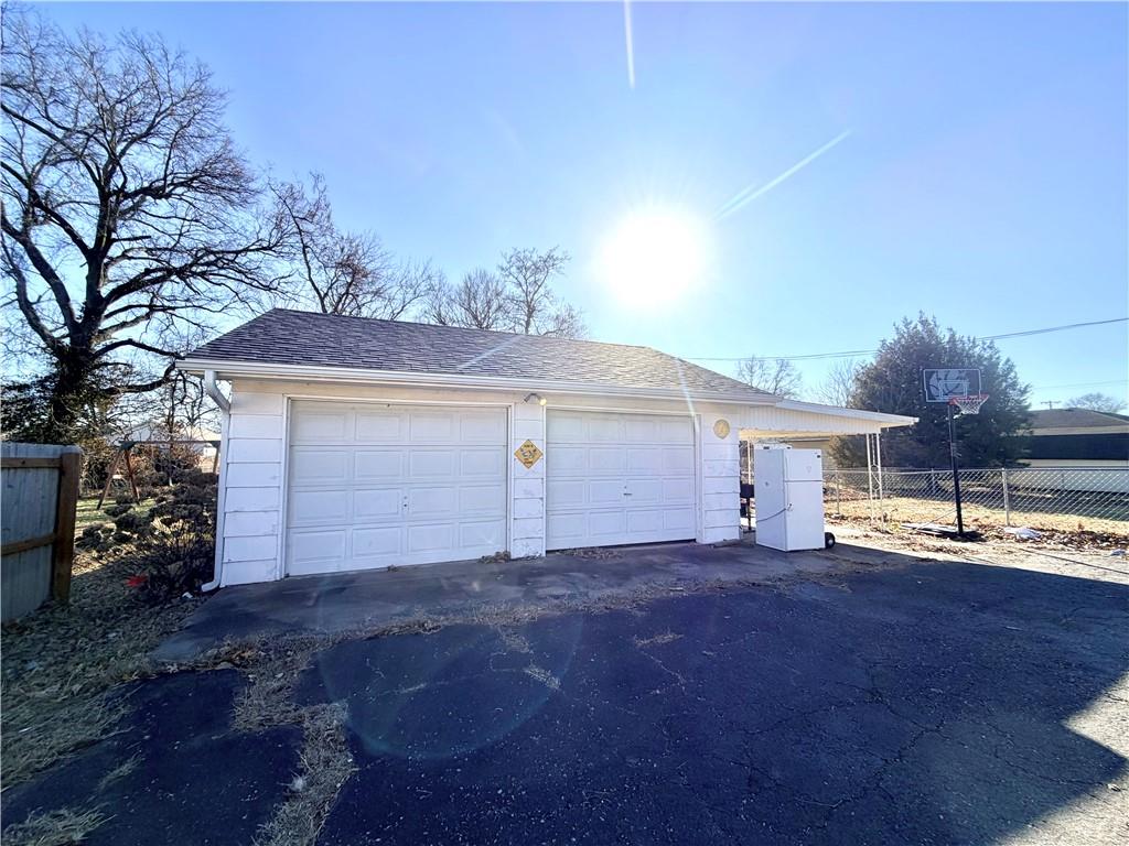 Check out this spacious brick home in Frontenac, KS, offering a functional layout and great potential! Step inside to a large family room filled with natural light from oversized windows, creating a warm and inviting space. Original hardwood flooring adds character to the family room and two bedrooms. The eat-in kitchen features wood cabinetry and a stove, providing a cozy place for everyday meals. The primary bedroom includes a wood-burning fireplace and a generously sized bathroom with washer/dryer hookup and a large closet. Between the kitchen and primary bedroom, you’ll find a versatile bonus room—perfect for a home office, mudroom, or even a potential additional bedroom. This home offers ample storage with multiple closets and built-in cabinets throughout. Outside, enjoy peace of mind with a roof that’s only one year old, along with a covered back patio ideal for relaxing or entertaining. Additional exterior features include a two-car garage with carport, storage shed, and a large backyard with a fenced-in area. While a little TLC is needed, this home boasts a great layout and endless possibilities. Don’t miss this opportunity in Frontenac—schedule your showing today! Property is being sold as-is.