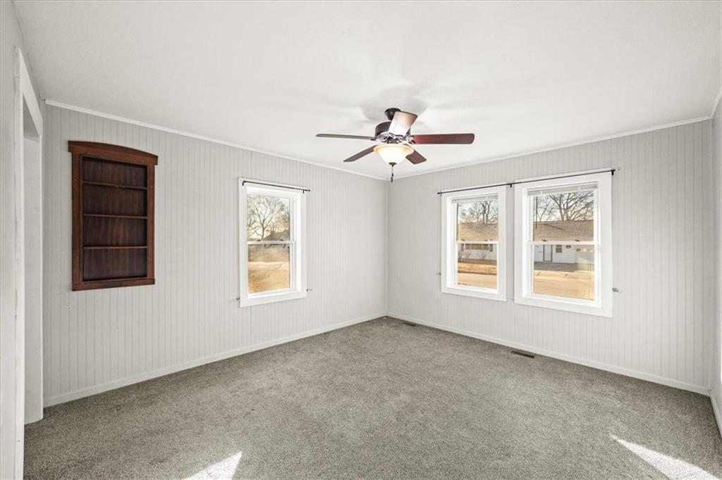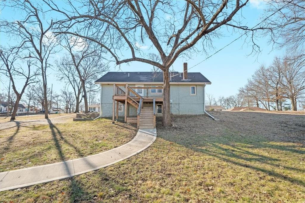 Charming Bungalow in Historic part of Paola, home is Located on a private Corner Lot that covers Nearly Half an Acre with all the conveniences of town living. Possibilities are endless with this beautiful piece of history. New HVAC (high efficiency furnace), excellent wood deck to enjoy your outdoor space, Concrete patio, New R40 insulation for high efficient heating and cooling, New Stamped concrete basement floor, New duct work, windows, electrical service, water, sewer line. So many possibilities with this home, basement is functional as a living space with a living room, full bathroom, walkin entrance and laundry. The upstairs room would make an excellent office, playroom or large bedroom. Ample room in this house to make it the perfect home for anyone!