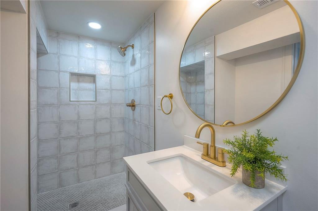 Experience the ultimate in value and quality with this reimagined true ranch home, ideally located on a private street with serene creek views. This meticulously remodeled residence, updated down to the studs, seamlessly combines the feel of new construction with the charm and character of Old Leawood—perfect for those seeking main-level living without sacrificing quality. Upon entering, you’ll find an inviting layout that balances open space with warmth. The expansive living room is designed for relaxation and entertainment, featuring a cozy fireplace and 12-foot sliding doors that create a seamless transition between indoor and outdoor spaces. The family room at the rear of the home is filled with natural light. Both rooms provide stunning views of the new stamped concrete patio, complete with a seating wall and integrated LED lighting, as well as the expansive yard and creek beyond. At the heart of the home lies the chef's kitchen, showcasing custom cabinetry with a natural maple island and a charming banquette seating area, all complemented by high-end GE Profile appliances that blend functionality with elegance. A private butler pantry adds convenience for storing kitchen appliances and keeping the space organized. The primary bedroom serves as a true retreat, featuring a custom walk-in closet and a spa-like bath that invites relaxation. The main level is thoughtfully completed with 2 additional bedrooms, a full bath, a mudroom, a laundry room and a convenient half bath. The beautifully finished walkout lower level enhances the home's appeal, offering a fourth bedroom, a third full bath, and a spacious rec room complete with a bar and daylight window—perfect for family gatherings or quiet evenings at home. This home perfectly blends luxury, comfort, and functionality, catering to an easy lifestyle while retaining the timeless charm of its Leawood heritage. More than just a house, this is a welcoming retreat for those who value quality living.