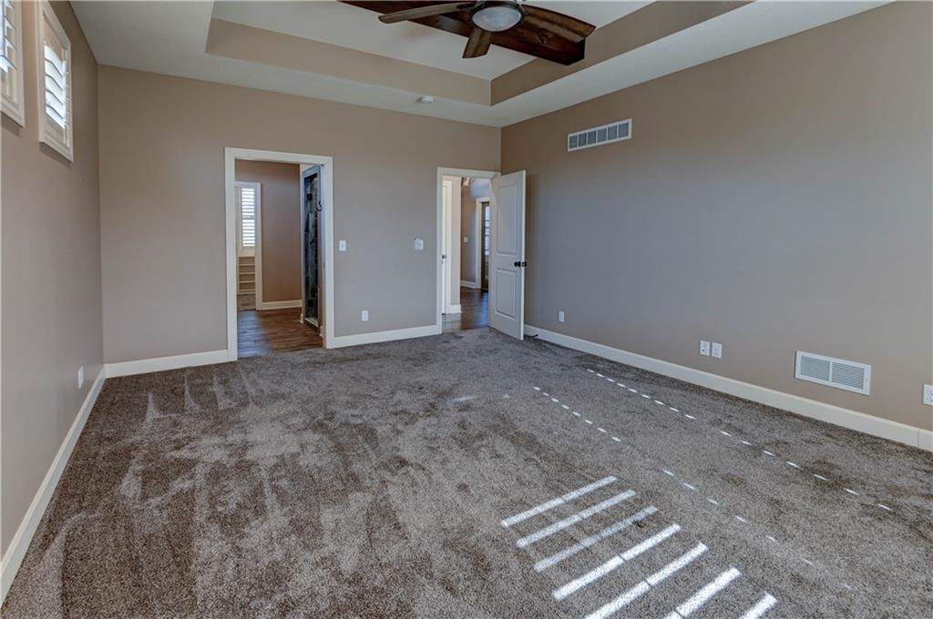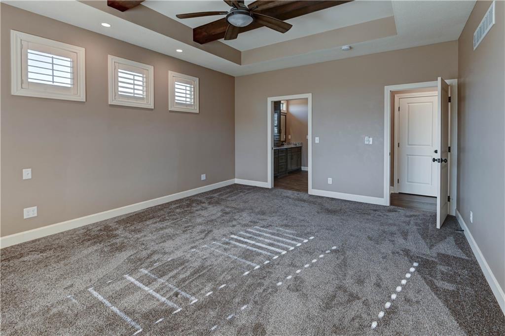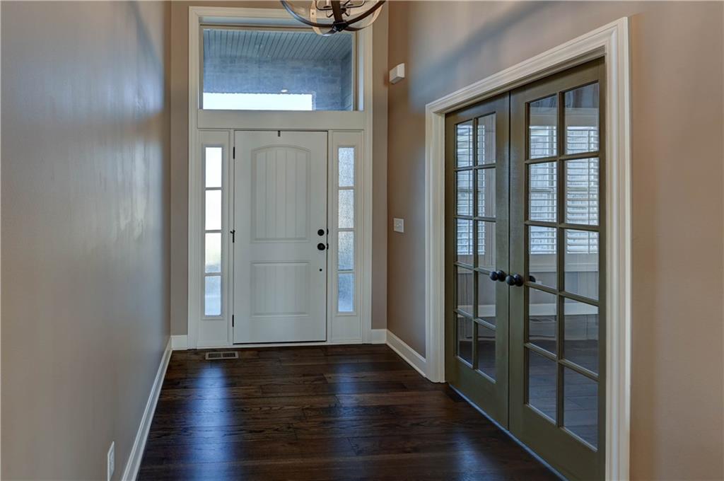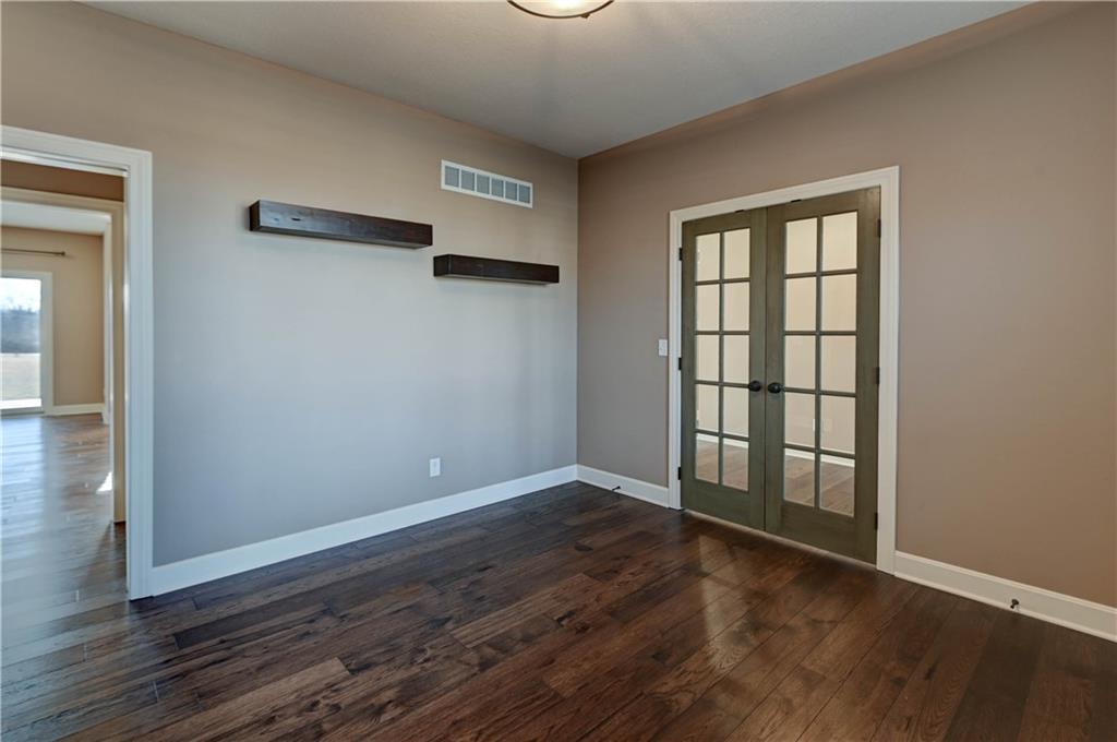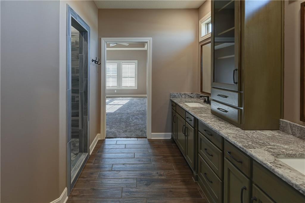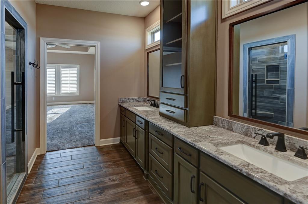 Stunning custom-built Jay Jackson home offering quality craftsmanship and timeless design on 1.5 beautifully landscaped acres. The oversized three-car garage features individual doors, larger bays, workshop space, and a wash sink. A spacious mudroom includes stone paver flooring, seating cubbies, folding area, broom closet, and laundry with cabinets. Hardwood floors flow through the kitchen, dining, and great room. The kitchen is designed for entertaining with GE Profile gas range, custom stained cabinetry, painted oversized island, granite countertops, copper farmhouse sink, and a large walk-in pantry. The dining area opens to a covered patio with ceiling fan. Plantation shutters throughout. The great room features a floor-to-ceiling stone fireplace and exposed beams. A custom half bath adds charm. The office offers wood floors, built-ins, and French doors, ideal for a flex or TV room. The entry showcases a striking light fixture, and the covered front porch is accented with stone. The main-level primary suite includes carpet, ceiling fan, exposed beams, walk-in closet, and master bath with double granite vanities and tiled shower with bench and dual shower heads. The upper level includes a large loft (possible 4th bedroom), two bedrooms with walk-in closets, and a Jack-and-Jill bath. The walk-out lower level is unfinished, plumbed for a bath, and offers excellent expansion potential. Additional highlights include a tile roof, stone and Hardy board siding, and beautiful seasonal landscaping.