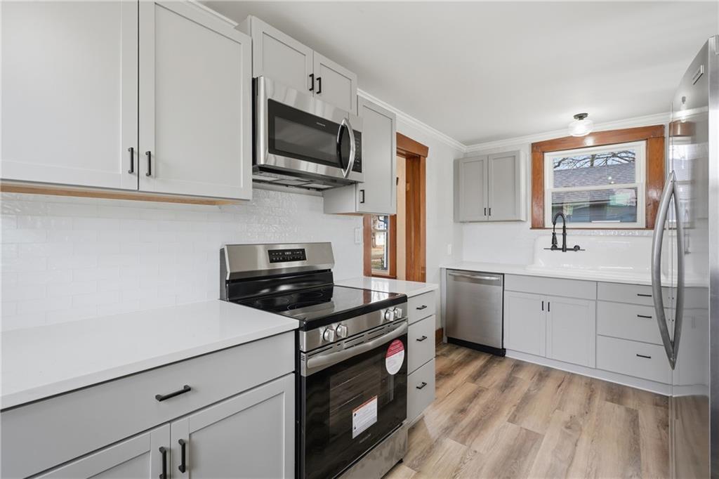 Charming Remodeled Home in Downtown Osawatomie! Welcome to this beautifully updated 2-bedroom, 1-bath home in the heart of town. Thoughtfully remodeled, this home blends modern comfort with classic character. Step inside to find fresh finishes, updated flooring, new windows throughout and a bright, inviting layout perfect for everyday living. The kitchen features brand new updates with plenty of cabinet space and new appliances, while the spacious living area offers a cozy place to relax. Both bedrooms are comfortably sized with great natural light. The updated bathroom adds to the move-in-ready appeal. Outside, you’ll love the convenience of the detached garage—perfect for parking, storage, or a workshop. The manageable yard offers room to enjoy outdoor time without the hassle of heavy upkeep. This home delivers small-town charm with modern updates at an affordable price.