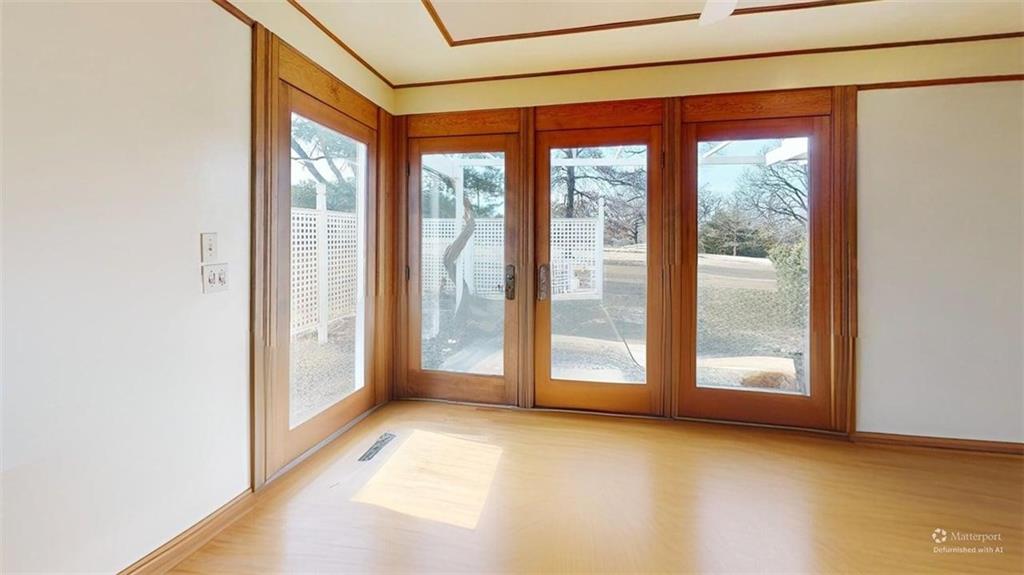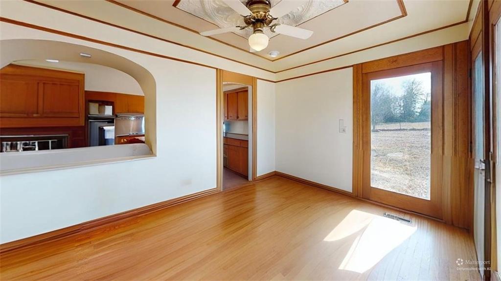 Artistic Modern Farmhouse on 24 Serene Acres Vernon County, MO | Just South of Nevada Discover the perfect retreat just outside the city limits of Nevada, Missouri. Situated on 24 peaceful acres of rolling pasture and mixed timber, this high-end modern farmhouse offers over 2,200 sq. ft. of meticulously updated living space. From the moment you turn off the paved road and ascend the long, private drive to the circular courtyard, you’ll realize this is not just a home—it’s a sanctuary. The Main Residence: The interior of this 3-bedroom, 3-bathroom home is a masterclass in "functional charm," featuring large, light-filled rooms and high-end custom finishes. Stately exposed beams, paneled wood ceilings, and graceful arches create an atmosphere of timeless elegance, accented by classy stained-glass windows. Cozy up by one of two fireplaces, including a stunning living room centerpiece featuring a handsome marble hearth. The Master Suite: A true showstopper, the master retreat includes a stately loft, a tiled bathtub, and a massive walk-in closet. The floor-to-ceiling windows offer breathtaking views of the acreage, equipped with motorized blinds for effortless privacy. The Guest House & Grounds: Versatility is built into the property with a 600 sq. ft. guest cottage. Perfect for a home office, a private space for extended family, or a lucrative vacation rental, it includes: 1 Bedroom / 1 Bathroom, kitchenette and cozy living area, an attached four-car garage with additional storage space. The Land & Location: While the home feels completely secluded, you are only minutes away from the shopping, dining, and healthcare of Nevada. The 24-acre parcel is predominantly pasture, making it ideal for hobby farming or horses, with patches of timber providing natural privacy and wildlife habitat.