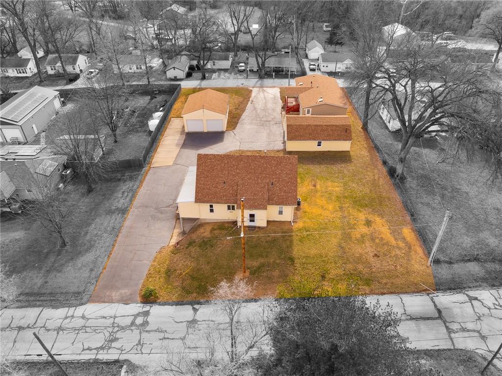 Once in a lifetime opportunity to own two homes on one property, ideal for multi generational living or an income producing investment. Situated on just over half an acre in Pleasant Valley, this unique property includes two turnkey three bedroom homes and two detached garages offering exceptional flexibility and value. This highly desirable location provides easy access to major routes including MO-92 and US-169, connecting quickly to I-35 and I-29 for convenient commuting throughout the Kansas City metro. The property is also near the Ford Kansas City Assembly Plant, a major employment hub, and is close to shopping, dining, services, and everyday conveniences while maintaining a comfortable suburban feel. Local amenities, schools and medical facilities are all within a short drive, enhancing rental and resale appeal. The main residence is a one and a half story home with approximately 1,494 square feet of finished living space, featuring three bedrooms, three full bathrooms, & large sunroom. A large unfinished walk out basement provides excellent potential for additional living space or future customization. The detached garage serving the primary residence measures approximately 22.6 by 25 feet, offering ample parking and storage. The second residence is a coveted true ranch home offering approximately 1,200 square feet of finished living space with three bedrooms and two full bathrooms. An unfinished basement adds future expansion potential. The detached garage serving the second home measures approximately 32.1 by 23.2 feet, providing generous space for vehicles, storage, or a workshop. Both homes are move in ready and offer privacy, functionality, and strong income producing potential. Whether you are investing for long term rental income, a live one rent one scenario, or multi generational living with separation and independence, properties with dual residences, separate garages, and room to expand are rare and provide exceptional long term value.