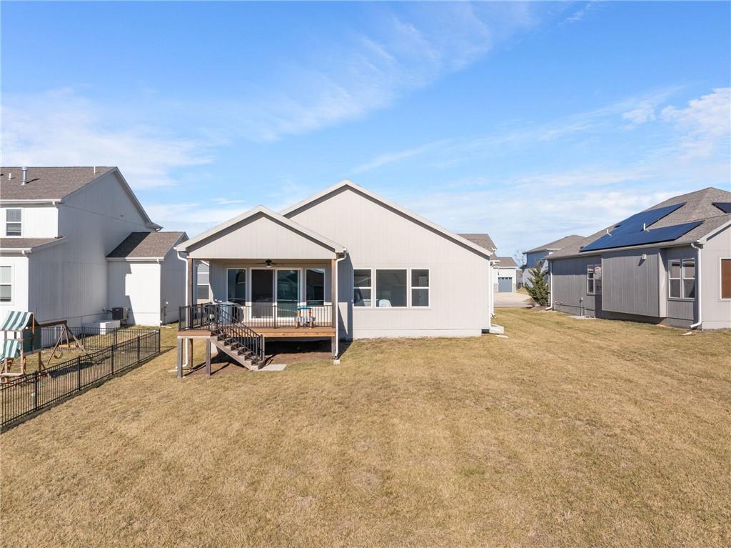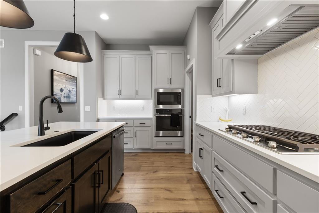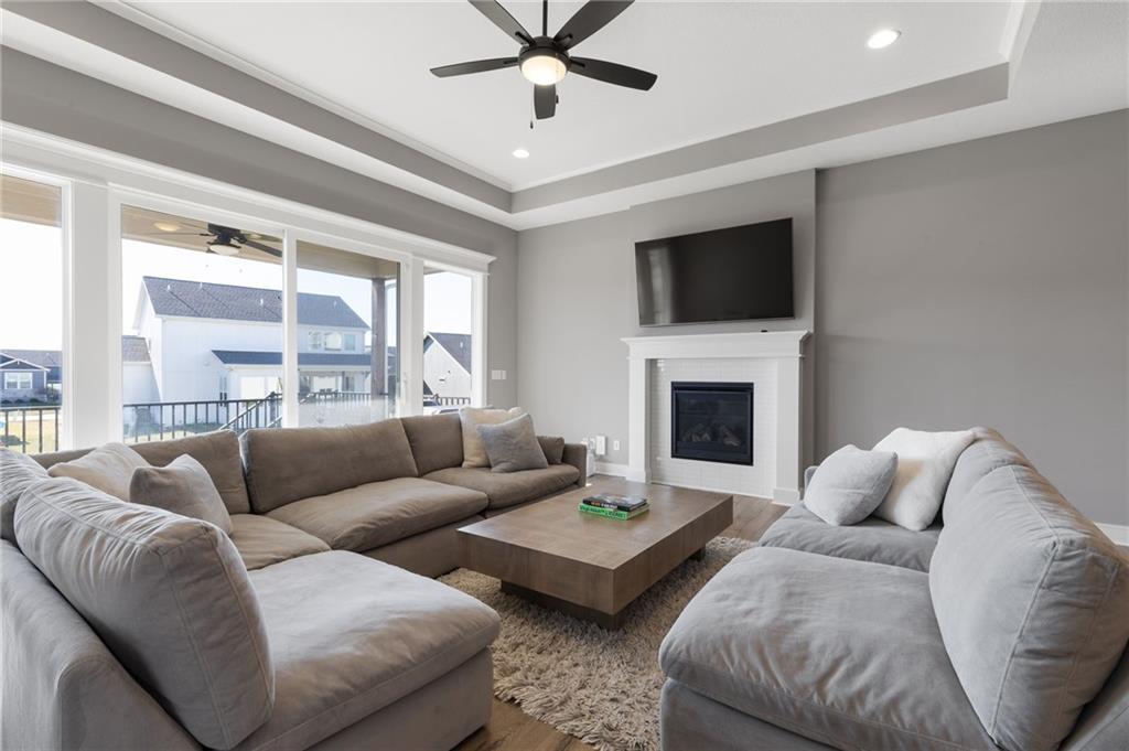 This BEAUTIFUL 5 bedroom, 3 bath home, built in 2022, combines modern design with comfortable living! The main level features 10 foot ceilings, designer finishes, and an open great room that flows into a chef’s kitchen with built-in appliances and generous storage. Primary suite offers a spa-inspired bath with an OVERSIZED ZERO ENTRY shower. The finished basement adds valuable living space with a rec room, wet bar, two bedrooms and one full bathroom. Enjoy the covered porch and spacious yard, as well as access to Pryor Ridge community amenities including trails, playground, courts, dog park, and pool!!