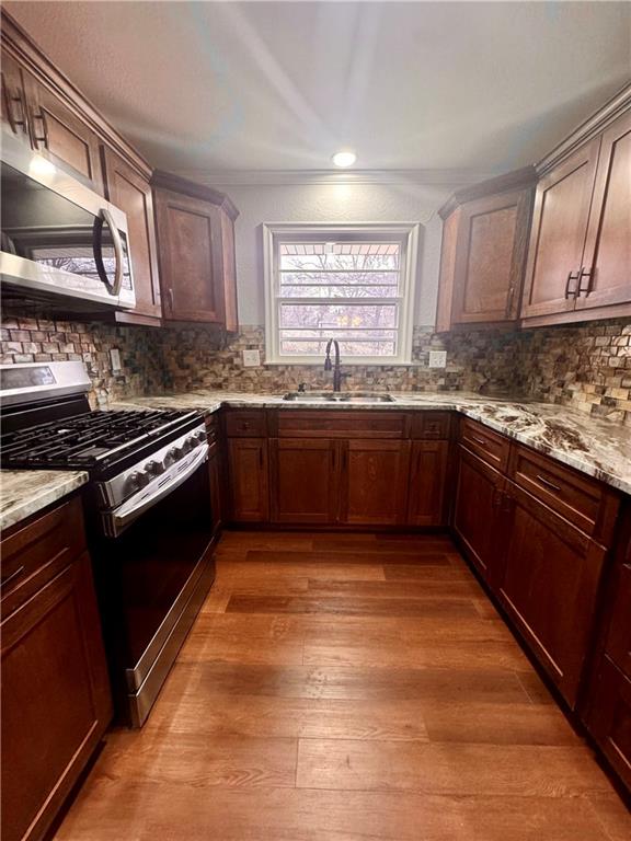 Welcome to this move in ready home with solid construction and thoughtful updates. Built with an all brick exterior and a strong foundation, the property offers lasting quality. A new roof was installed in 2023, and the landscaping has been well maintained, giving the home a clean and cared for appearance. Inside, you’ll find a comfortable living area that flows into the kitchen, which features a custom island and an adjoining dining space. All appliances are included, and the home offers four well-sized bedrooms along with two bathrooms, one in the hallway and one in the primary suite. The basement is clean and versatile, ready for your ideas, and includes a second full kitchen. The garage provides generous space for parking and storage. Out back, an oversized deck creates a great spot for gatherings, with a backyard that offers plenty of room to enjoy. This property combines solid construction, practical features, and inviting spaces. Contact me to schedule a showing and let's start your New Life!
