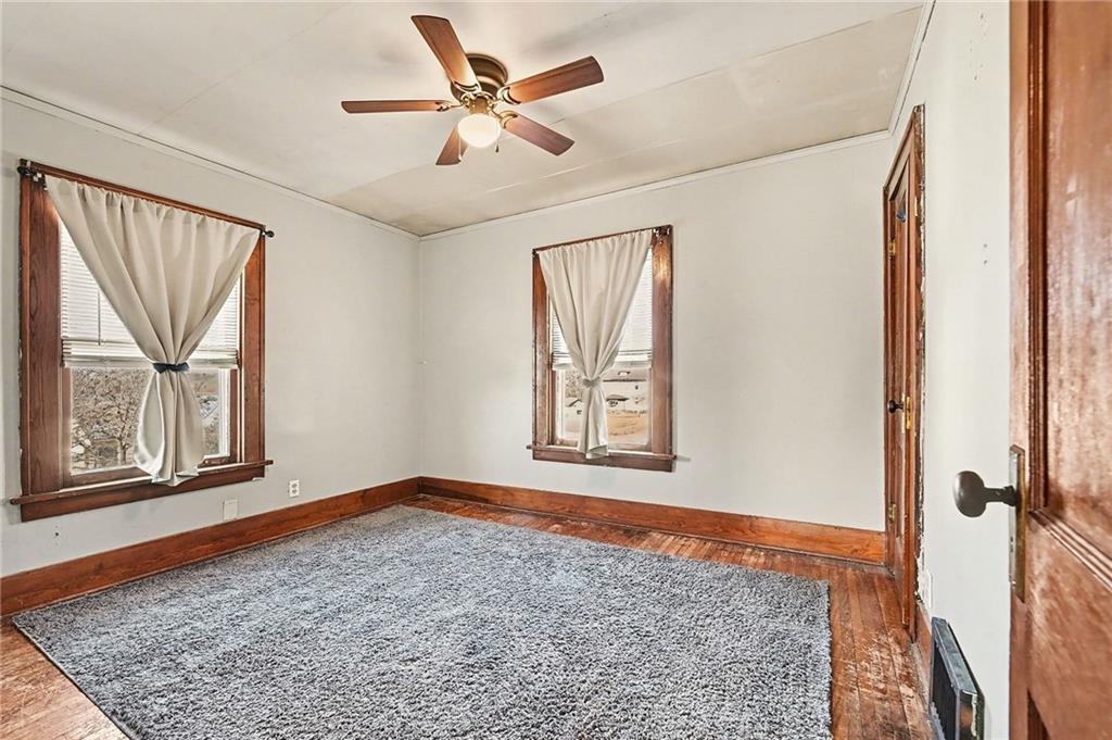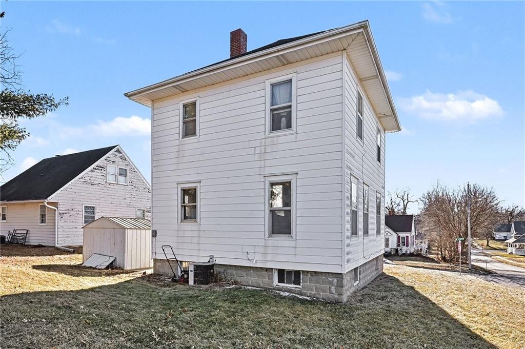 Investment opportunity! This 4 bedroom, 1 bath home would make the perfect rental, flip or first home! Loads of potential with the original hardwood floors, craftsman style trim, beautifully detailed baluster and lovely French doors still intact! Several big ticket updates have already been completed including a new roof, newer furnace and updated bathroom. Full basement offers ample storage space and laundry hook ups. Located on a large corner lot adjacent to Judah Park and just minutes from Northwest Missouri State University! 10x10 storage shed stays with property.