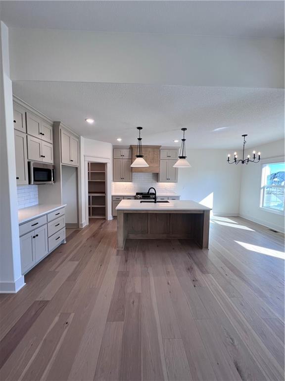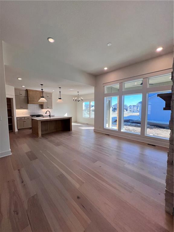 Welcome to Symphony Farms, one of the most sought after subdivisions in Gardner. Lifestyle Building & Designs newest reverse story and half home, The Picket, a 4 bedroom, 3 bath, 3 car garage home which is nestled on a corner lot of a cul-de-sac. Do you love a home with a front porch? Then you are in luck. The Picket is our only reverse story and half home with a large front porch. The Large spacious kitchen features custom cabinets, island with sink, walk in pantry, GE Profile appliances including a gas range. It opens up to the family room which has a gas fireplace, built-ins and large windows letting natural light in. The breakfast area has a door leading out to your covered patio. The Primary suite has a vaulted ceiling with fan, ensuite has large vanity with 2 sinks, large shower with bench, custom walk-in closet which is attached to the laundry. Off the garage is the drop zone with a custom boot bench. Second bedroom on the main level has 4 windows letting natural light in and is adjacent to the second full bath with shower/tub. Lower level has a large family room with large closet for board games etc, a linen closet across from the third bathroom, and two spacious bedrooms. This home is available for sale and will be completed February 2026.