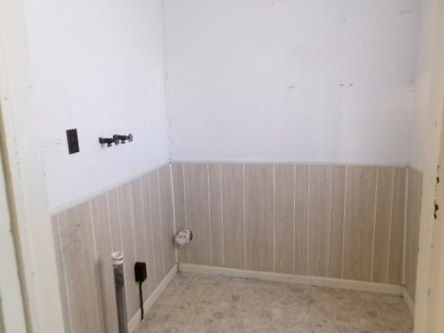 Washroom with light floors and wainscoting
