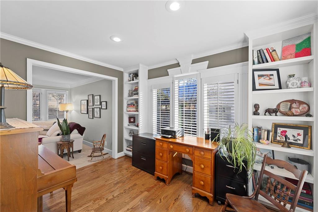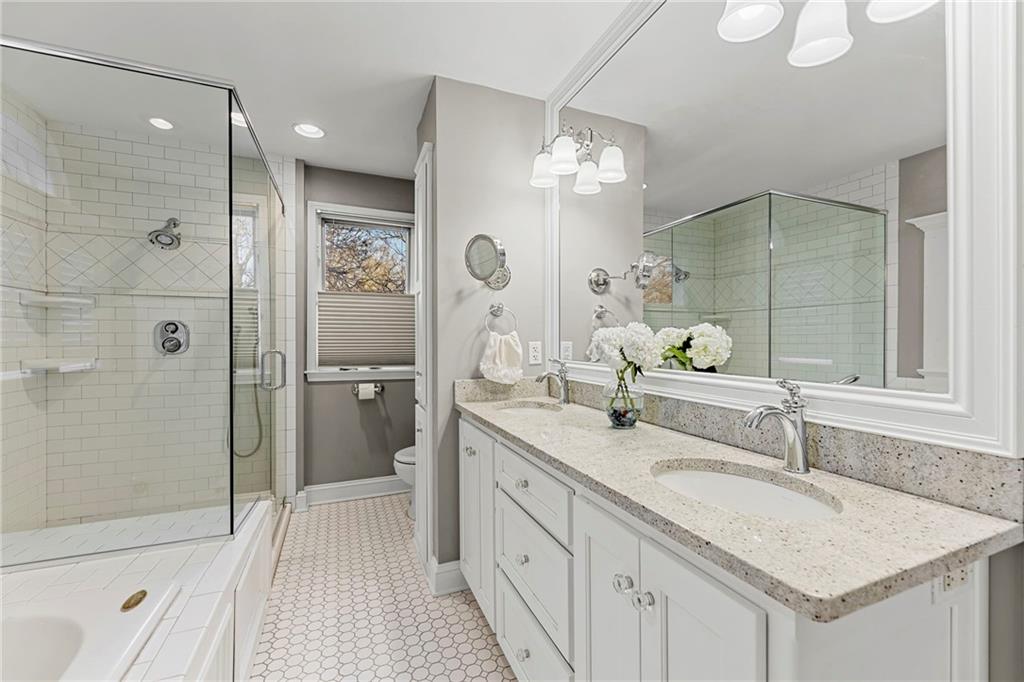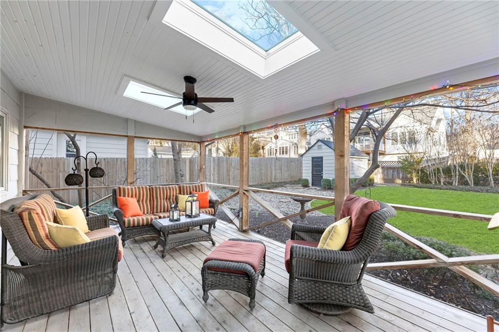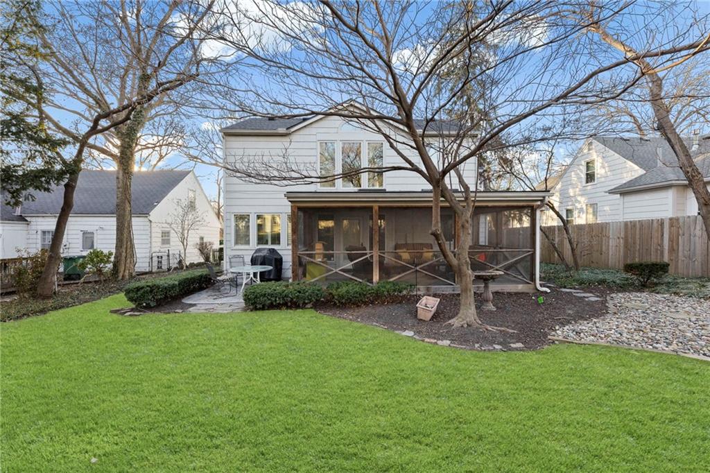 Welcome home to this beautifully updated 2 story in the heart of Fairway's Golden Triangle where you'll find a wonderful blend of comfort, style and functionality. Step inside to a lovely living room with with beautiful hardwood floors and lots of natural light. The dining room flows into the designer kitchen complete with quartz countertops, graphite sink, tons of storage and eat-in-area. The spacious family room offers plenty of room to relax with an absolutely gorgeous fireplace recently completely redone and updated with beautiful Volakas white marble, perfect for cozy evenings and entertaining. Separate office room is an added bonus. On the second level you'll find three bedrooms. The amazing primary suite with vaulted ceiling, gorgeous spa-like bath, huge California walk-in closet and laundry closet all designed for both luxury and convenience. Outdoor living shines just as brightly with a screened-in porch ideal for morning coffee or evening unwinding, plus a stamped patio ready for gatherings or quiet nights under the stars. Cottage-style garden shed is a gardener's delight. Don't miss this one!