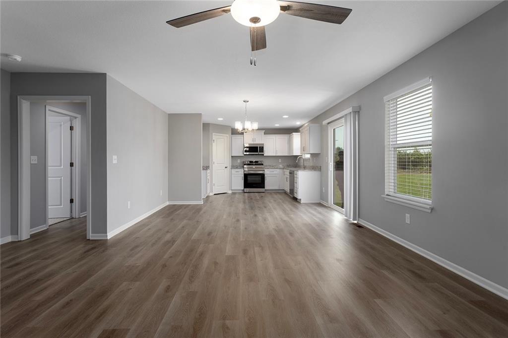 Exit 150 West to Grandview, in 3 miles turn left onto Horridge Road, 1 mile Turn right onto 115th Street, 1 mile turn left onto Madison Street, 1.7 miles right onto Heritage Drive, left onto Fox Glove Drive, left onto Blazing Star Drive to the property.