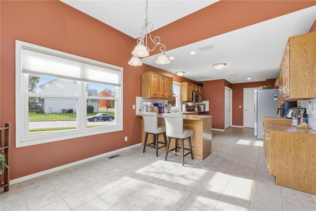This charming MAIN LEVEL LIVING corner-lot home seamlessly blends timeless character with thoughtful updates throughout. Step inside to discover Vaulted Ceilings, Brand-New Wood Flooring, a Cozy Fireplace, and Floor-to-Ceiling Windows that create a fresh and inviting space. The Open-Concept Dining area is perfect for entertaining guests or enjoying family dinners. Head into the Kitchen, which boasts ample stained cabinets for all your storage needs. The Breakfast Nook is ideal for morning coffee or lively gatherings. Just off the Kitchen, you’ll find the Main-Level Laundry area and easy access to your spacious two-car garage. The Primary Bedroom is spacious w it's own On-Suite w New Tile throughout as well as Walk-In Closet. Explore the Finished Basement, which features another Full Bedroom, Full Bathroom, and Living Room. This home exudes personality, combining a touch of vintage charm with modern elegance and brimming with potential. The Meadows of Winterset offers a Pool and Playground, while nearby Walking Trails, Golf Course, Local Retail Shops and Restaurants, and easy Highway access provide a convenient lifestyle.