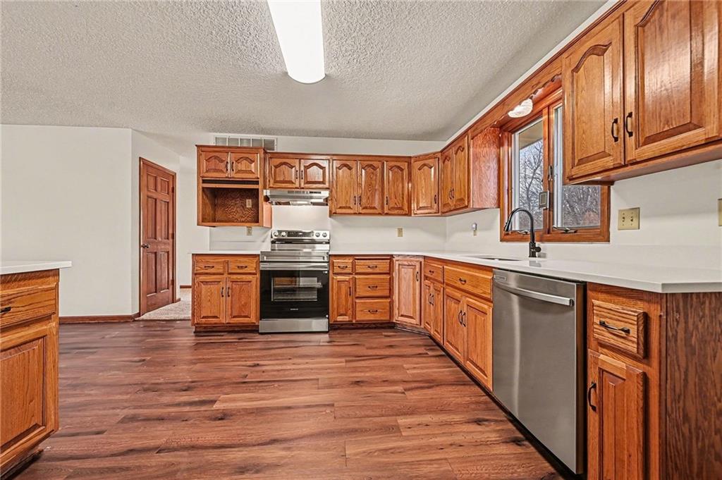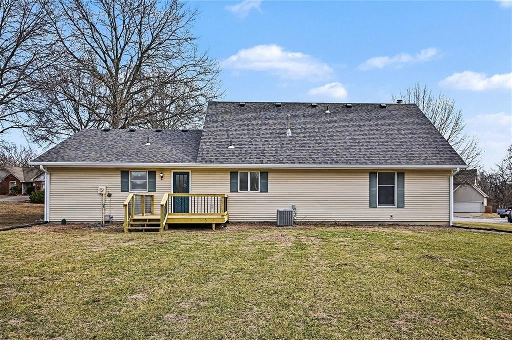 BEAUTIFULLY UPDATED 1.5 story home on .69 acres w/1.2 acre lot next door INCLUDED IN THE SALE! VERY RARE TO FIND ALMOST 2 ACRES IN TOWN!! TURN KEY!! ALL NEW...LVP flooring, carpet, interior paint, stainless appliances, lighting, deck, roof & gutters! MAIN LEVEL LIVING includes PRIMARY SUITE offering large windows, walk in closet & ensuite bath. SPACIOUS GREAT ROOM w/BEAUTIFUL WOOD BEAMS & stone fireplace. The kitchen features TONS OF CUSTOM CABINETS, island, new appliances, new flooring and LARGE DINING SPACE. Main level laundry & half bath. Upper level is perfect for growing families w/2 large secondary bedrooms and large bathroom w/lots of storage. LL is ready for your finishing touches! COVERED FRONT PORCH welcomes you & NEW DECK off the back is great for entertaining! The kids will love the HUGE BACKYARD & 2ND TREED LOT FOR EXPLORING. Shed for convenient storage. Nothing to do here but move in!