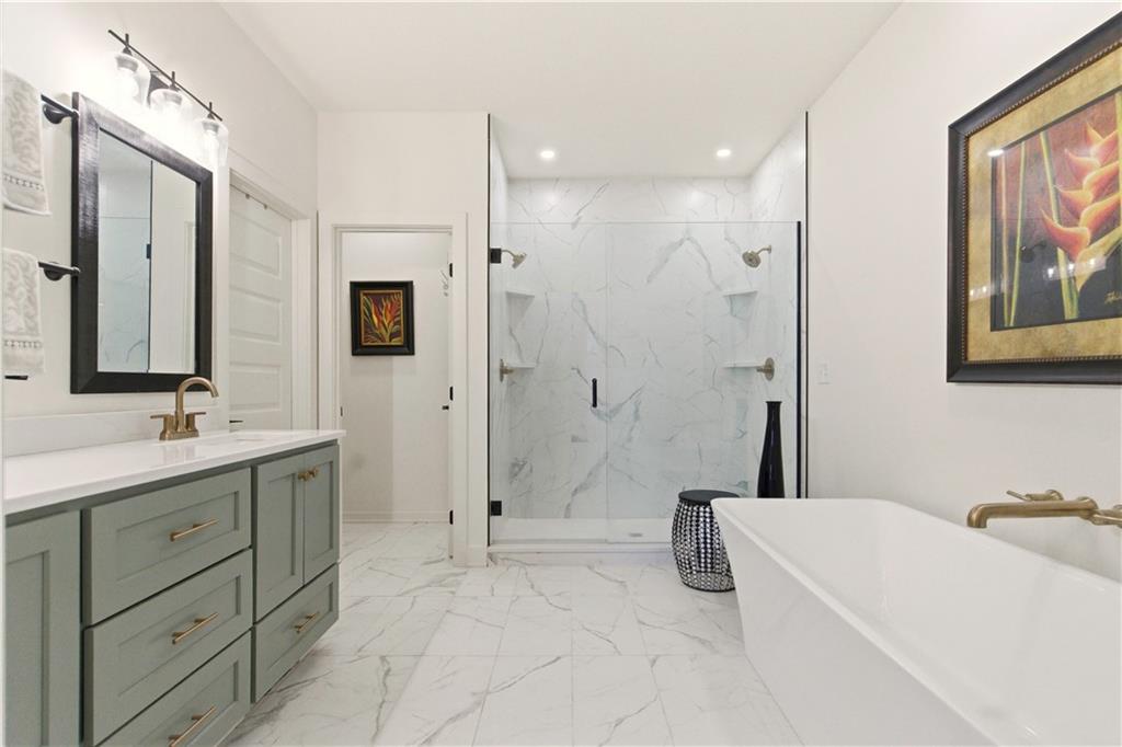 Better than New! Gorgeous Ranch home with Finished Walkout on Large Fenced Yard. Prepare to be impressed with this nearly new home with soaring 13' Ceilings, an Open Floorplan, Abundance of Windows, Amazing Wide Plank White Oak Floors on Main Level, Eye Catching Wood Beams in Great Rm Ceiling, Beautiful Wood Accents such as Windows Seats, & Plantation Shutters. Curb Appeal & the Exterior is Awesome with Timber Entrance, Huge Covered Deck, Large Patio and fully Fenced Yard. You will love the Kitchen with a Huge Quartz Island, Custom Cabinetry, Pantry,6 Burner Gas Cooktop; which opens to a lovely Breakfast area. This true Ranch is home to the Primary Bedroom and 2 additional Bedrooms on the Main Level. The Primary Bathroom will not disappoint with Quartz Counters, Large Soaking Tub, Spacious Tile Shower, and Real Stone Floors. Your Entertaining space greatly expands with a Finished Walkout offering a Large Family Room and 2nd Kitchen with Quartz Counters and areas appointed for a mini Refrigerator and Dishwasher. Note very nearby storage allows space for a Full Sized Refrigerator. 2 Spacious Bedrooms and Bathroom with adjoining exterior Patio complete the Lower Level that is perfect for a Separate Quarters. Here is your chance to skip the building process and enjoy all the perks of a nearly new home that already has the landscaping, window treatments, and all those needed home owner adds once you first move in while enjoying all the amenities of Lee's Summit and nearby Legacy Park!