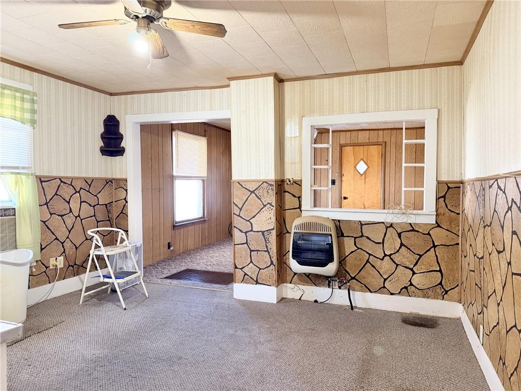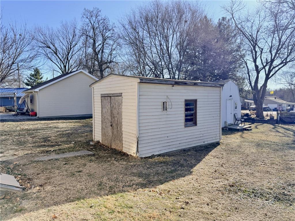 Charming 1910 ranch home offering 990 square feet of living space with 2 bedrooms and 1 bathroom. This property features a comfortable living room, kitchen, and enclosed front porch—perfect for enjoying your morning coffee. Heating is provided by a wall-mounted natural gas heater, with window AC for cooling. Exterior highlights include low-maintenance vinyl siding, a good-sized yard, concrete patio area, carport, detached garage with concrete floor, and additional storage shed. Conveniently located close to the college, this home has great potential as a starter home or rental investment. Needs TLC and updating, but priced to sell—an excellent opportunity. Bring your vision and make this one your own!