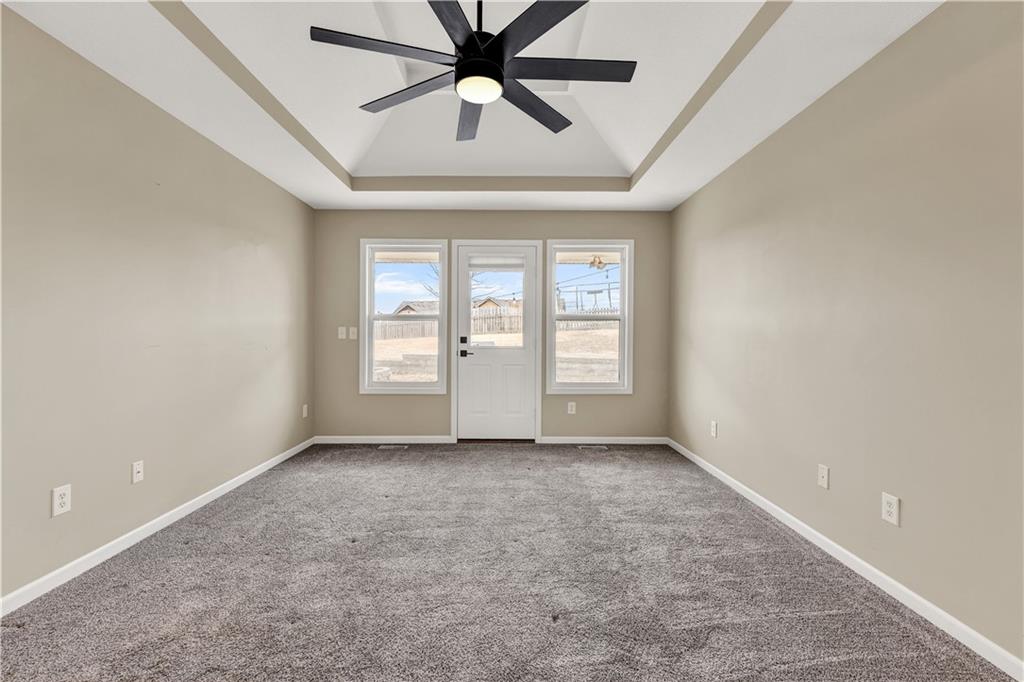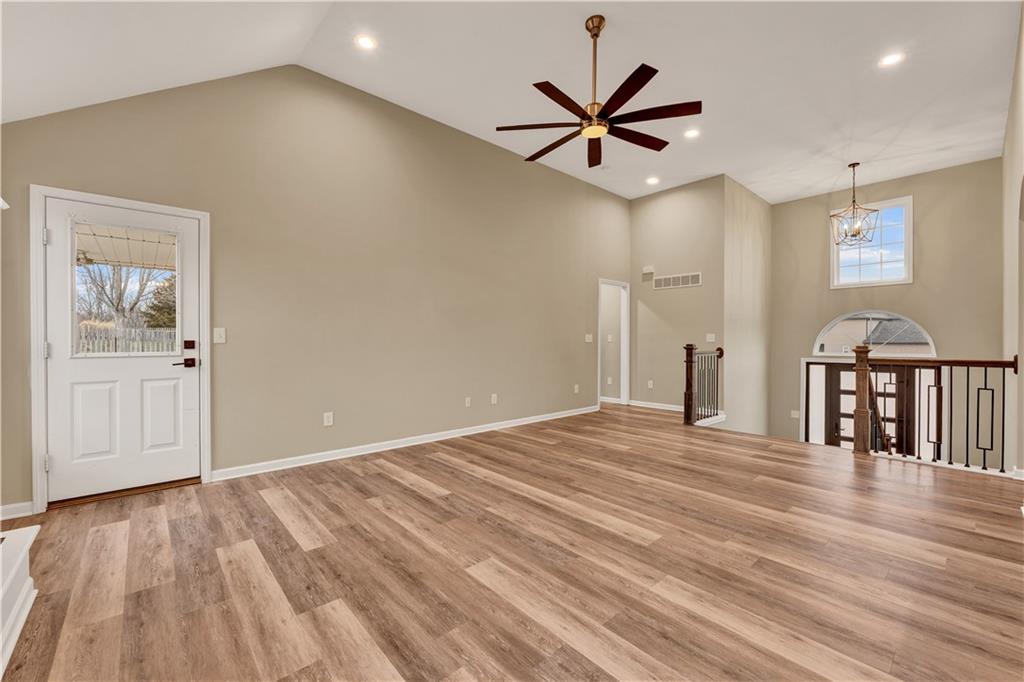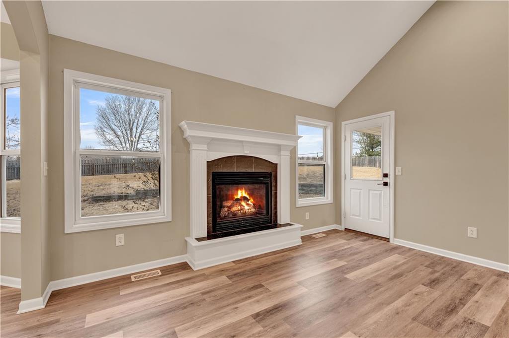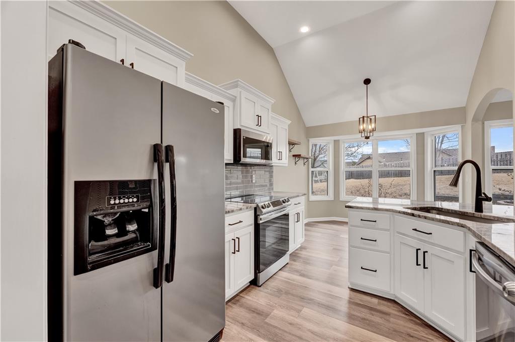 Your new home for the New Year! This exquisite home was extensively remodeled just a couple of years ago. Nestled in a cul-de-sac in the desirable Deerfield subdivision, just a short distance to shopping and restaurants downtown and a 15-minute commute to Whiteman AFB. Coming up the extra wide entry staircase leads to soaring ceilings in the spacious Living Room with a cozy gas fireplace for the chilly days. The breakfast area connects to the stunning Kitchen with gorgeous stone countertops, tile backsplash, stainless steel appliances and a pantry. The dedicated Dining Room is directly nearby. The Primary Bedroom Suite is on one side of the home with direct access out to the back yard patio and a large on-suite Bathroom with vaulted ceilings, double sink vanity, jetted tub, separate tiled shower, and generous walk-in closet. The secondary Bedrooms and Bathroom are on the opposite side of the home. Head to the lower level to the Family Room/flex space with another full Bathroom. The fenced back yard is quite wide with a landscaped patio, fire pit and grill station for relaxation, hosting, and kids/pets to play safely. This is also within walking distance to the Hidden Pines Country Club; join as a member for all access to the golf course and pool! The neighborhood HOA frequently hosts community events, food trucks, and socials. Home is where memories are made...start making new ones in your beautiful home and neighborhood!