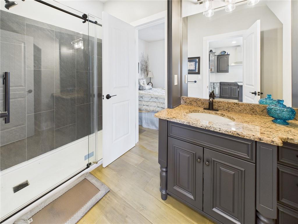 Built in 2022 and situated on approximately 0.34 acres, this beautiful 3-bedroom, 2-bath home is located in the desirable Paradise Point subdivision. (3rd bedroom does not have a window) The seller truly spared no expense with upgrades throughout the home. The entry welcomes you into an open floor plan with soaring cathedral ceilings and large windows that flood the home with natural light. The living room is cozy and spacious with a wood-burning fireplace sitting perfectly between the living and dining rooms, creating a warm and inviting atmosphere. The dining room features tall, elegant windows and a French door that opens to a large deck and flows seamlessly into the spacious kitchen, making it ideal for entertaining. The kitchen offers an abundance of tall cabinetry, large island with additional seating and elegant granite countertops. Just off the kitchen is a large pantry/laundry room with granite countertops and additional storage. The spacious main-level primary bedroom features a full bath with granite countertops and a tiled walk-in shower. Upstairs, you’ll find a loft overlooking the main living area, two spacious bedrooms, and a large bathroom featuring granite countertops and a dedicated makeup vanity. One upstairs bedroom includes pull-down attic access for extra storage. The attached garage is approximately 740 square feet with tall ceilings, two garage doors, and a built-in tornado shelter located in the floor of the garage. Between the home and the detached garage is a circle drive for additional parking. The detached shop with concrete flooring offers an additional 190 square feet of workspace or storage. This home is part of the Paradise Point subdivision in Warsaw, MO, on the Upper Osage Arm of the Lake of the Ozarks. The community offers lake access, private docks, and close proximity to marinas and swim beaches—perfect for boating, fishing, and lake living.