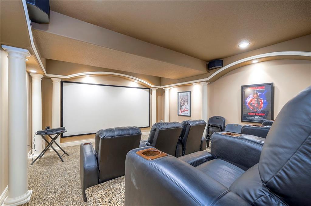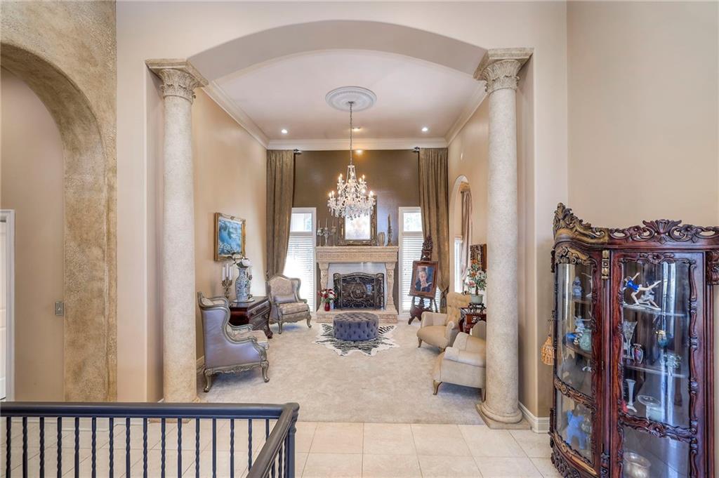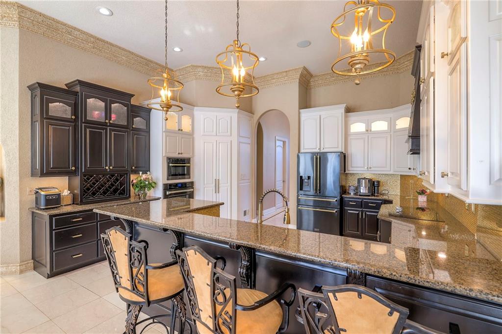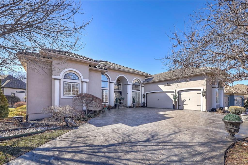 This stunning 6,000+ sq ft reverse story-and-a-half residence blends timeless elegance with refined European flair, offering luxury, comfort, and exceptional design at every turn. Featuring 5 spacious bedrooms and 4 full baths plus a powder room (4.1 baths), the home is thoughtfully designed for both everyday living and grand entertaining. The main level showcases expansive living areas with beautiful tile floors, soaring ceilings, and abundant natural light. The gourmet kitchen is appointed with rich granite countertops, custom cabinetry, premium appliances, and generous workspace—perfect for hosting or preparing family meals in style. The reverse story-and-a-half layout places the luxurious primary suite and key living spaces on the main level, while the lower level opens to additional bedrooms, recreation space, and a full secondary kitchen—ideal for multi-generational living, guest quarters, or extended entertaining. The lower level also features a dedicated media room, creating the ultimate private theater experience for movie nights and game days. Architectural details throughout the home reflect classic European influences, from elegant finishes and refined textures to graceful design lines that add warmth and sophistication. With its expansive square footage, high-end finishes, and versatile living spaces, this exceptional home offers both grandeur and functionality—perfect for those who appreciate luxury with distinctive European character.