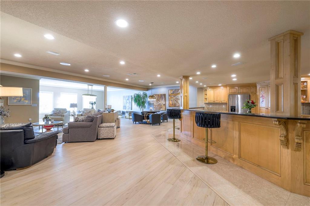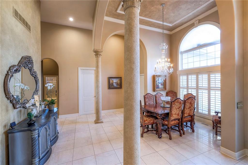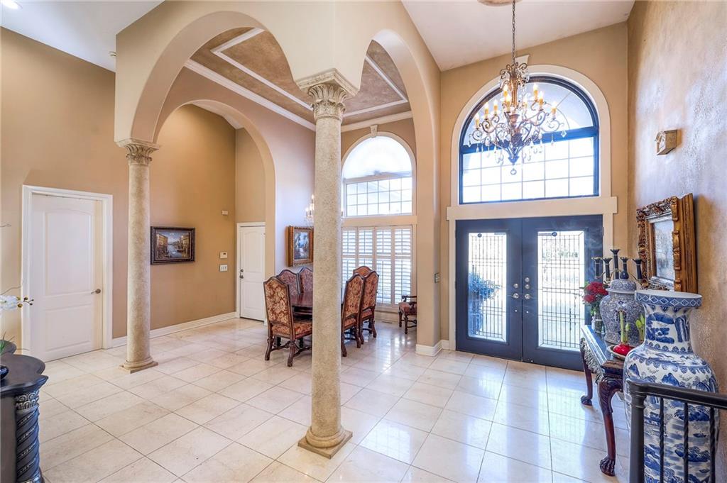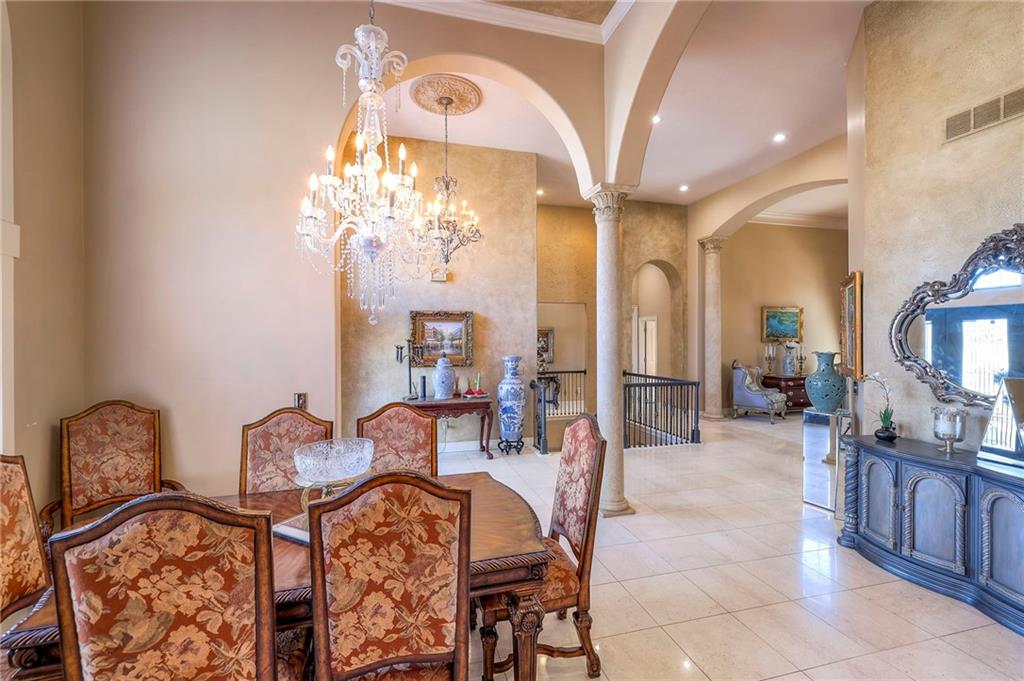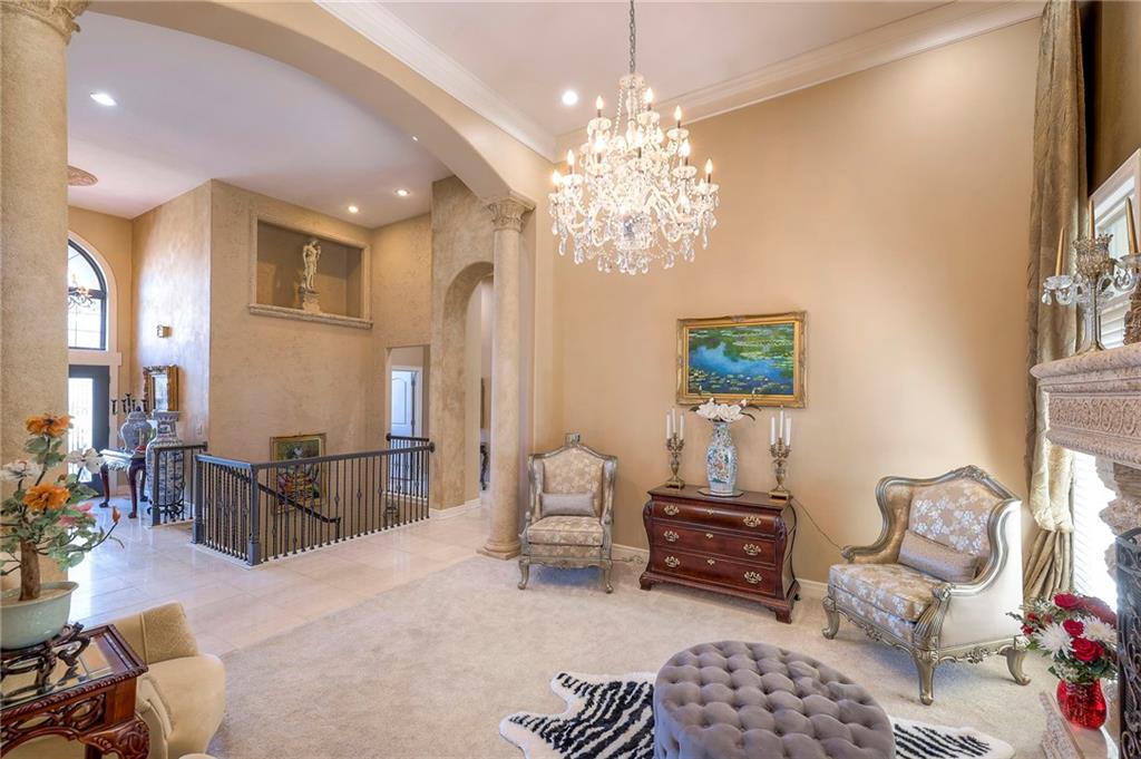 This stunning 6,000+ sq ft reverse story-and-a-half residence blends timeless elegance with refined European flair, offering luxury, comfort, and exceptional design at every turn. Featuring 5 spacious bedrooms and 4 full baths plus a powder room (4.1 baths), the home is thoughtfully designed for both everyday living and grand entertaining. The main level showcases expansive living areas with beautiful tile floors, soaring ceilings, and abundant natural light. The gourmet kitchen is appointed with rich granite countertops, custom cabinetry, premium appliances, and generous workspace—perfect for hosting or preparing family meals in style. The reverse story-and-a-half layout places the luxurious primary suite and key living spaces on the main level, while the lower level opens to additional bedrooms, recreation space, and a full secondary kitchen—ideal for multi-generational living, guest quarters, or extended entertaining. The lower level also features a dedicated media room, creating the ultimate private theater experience for movie nights and game days. Architectural details throughout the home reflect classic European influences, from elegant finishes and refined textures to graceful design lines that add warmth and sophistication. With its expansive square footage, high-end finishes, and versatile living spaces, this exceptional home offers both grandeur and functionality—perfect for those who appreciate luxury with distinctive European character.