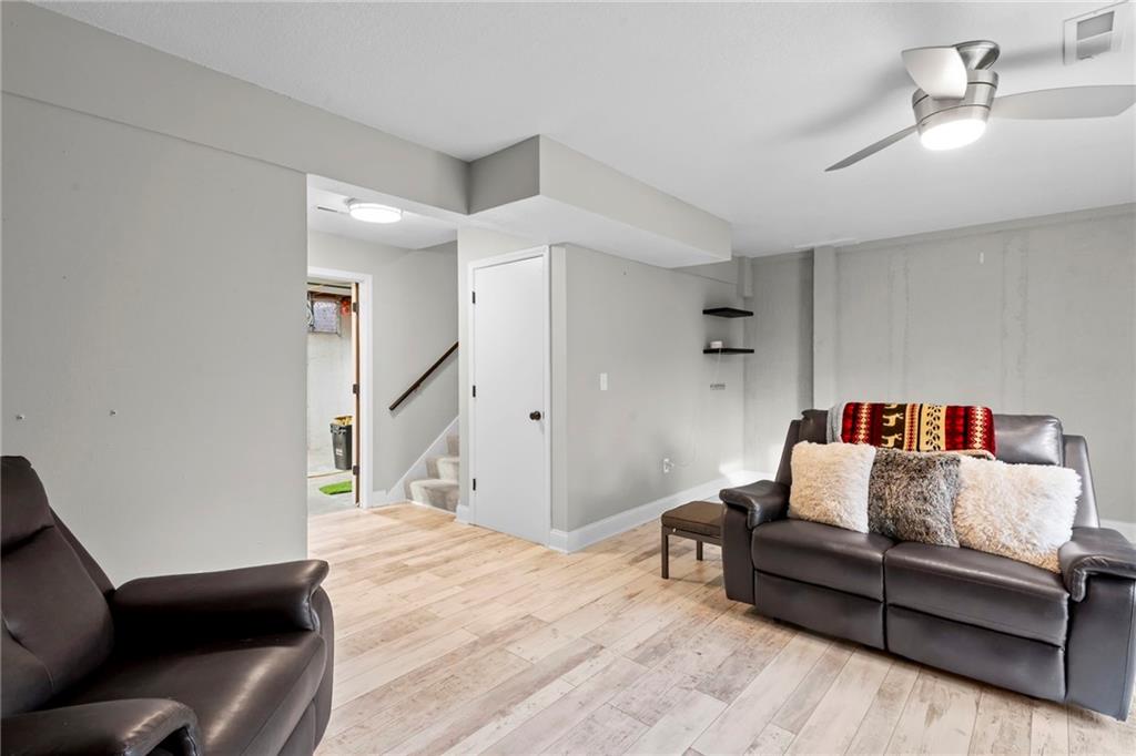 Tucked into the established The Coves neighborhood, this thoughtfully updated townhome blends comfort with everyday practicality. The main level welcomes you with light flooring, neutral tones, and a spacious living room anchored by a painted brick fireplace, perfect for both quiet evenings and easy entertaining.The dining area flows naturally into the bright kitchen, featuring white cabinetry and a functional layout that keeps everything within reach without sacrificing style. Upstairs, two bedrooms and a full bath are intentionally set apart from the main living spaces, offering privacy and a true retreat at the end of the day. The finished basement expands your options with a rec room or second living area, plus a convenient half bath, ideal for movie nights, guests, or a home office setup. Enjoy maintenance-provided living, with HOA services covering exterior maintenance, lawn care, snow removal, trash, and sewer—plus access to neighborhood amenities including a pool and clubhouse. Located just off Barry Road with quick access to shopping, dining, and entertainment, and minutes from I-29 for easy commuting throughout the metro, this home delivers both location and low-maintenance living.