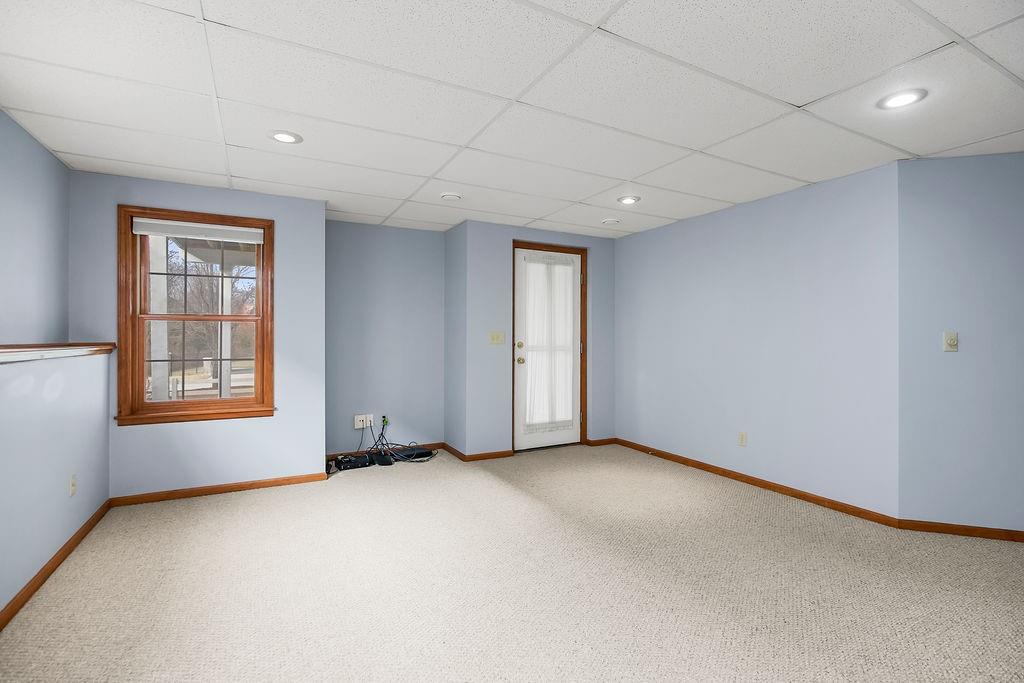 This beautifully maintained, second-owner custom home offers thoughtful design, extra living space, and an unbeatable location in the highly sought-after Cardinal Woods 55+ neighborhood. The main level features 2 spacious bedrooms, including a primary suite with a large walk-in closet and a tiled master bath. The kitchen boasts solid-surface countertops and an expanded dining area, perfect for everyday meals or entertaining. The walkout lower level provides 2 additional bedrooms and a generous family room, along with approximately 720 sq. ft. of unfinished space for storage, hobbies, or future customization. Unique to this property, the garage is suspended—creating a rare and versatile storage or workshop area beneath it. In total, the lower level offers 1,094 finished sq. ft. plus the unfinished space. Enjoy the benefit of a new roof! Furnishings are negotiable to stay. Nestled on a quiet block, this home offers not just comfort but also a true sense of community. Don’t miss the chance to make it yours!