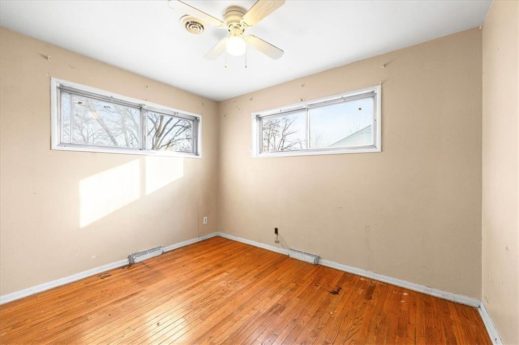 This classic ranch offers a straightforward layout and solid fundamentals, ready for its next chapter. The main level features three bedrooms, a full bath, original hardwood floors throughout, and large windows that draw in natural light. The living and dining areas flow into an updated kitchen with abundant cabinet space, tile flooring, and a functional workspace overlooking the backyard. A full basement expands the usable square footage, providing a wide-open area for storage and hobbies along with a separate finished room that can flex to a variety of needs. The attached garage offers convenient parking and additional utility space. Outside, the fenced yard includes mature trees and a storage shed, with plenty of room for future landscaping or outdoor projects. Located on a quiet street with quick highway access and nearby conveniences, this home is an excellent opportunity for investors, first-time buyers, or anyone looking to add value through updates while building equity.
